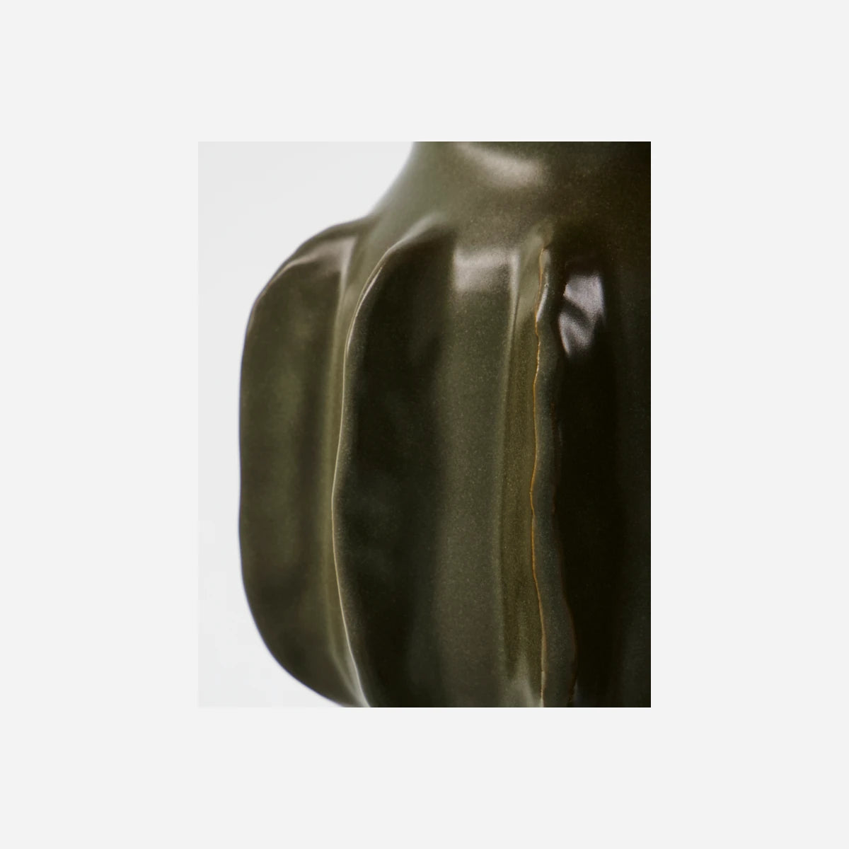 This handmade stoneware vase brings sculptural elegance to your interior with its organic form and textured ribs. The deep green glaze adds depth and character, making it a statement piece whether displayed empty or with fresh blooms.