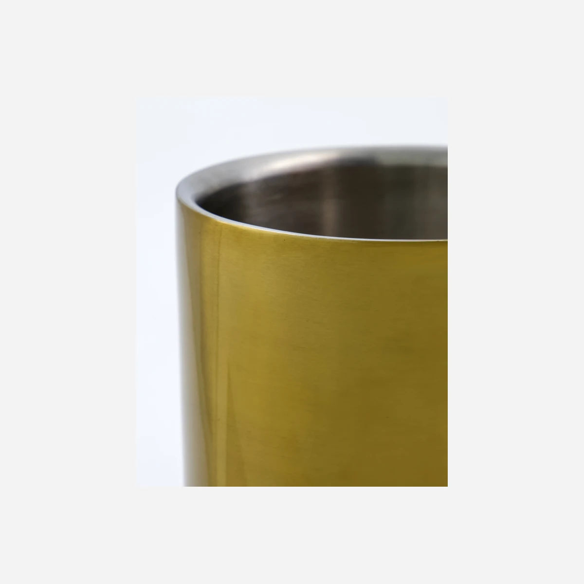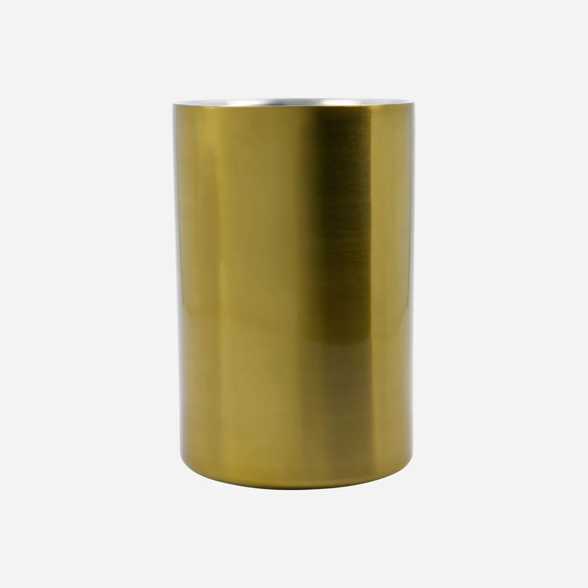 This wine cooler with an antique brass finish becomes the centrepiece at your table, keeping your wine perfectly chilled and your gatherings effortless. The stainless steel form offers both style and durability, while the warm hue and subtle sheen bring a sophisticated touch to any dinner or home bar setup. Place it on your dining table for elegant evenings or display it on your bar cart for spontaneous celebrations. Pair with coordinating cocktail accessories to create a functional and beautiful home bar.