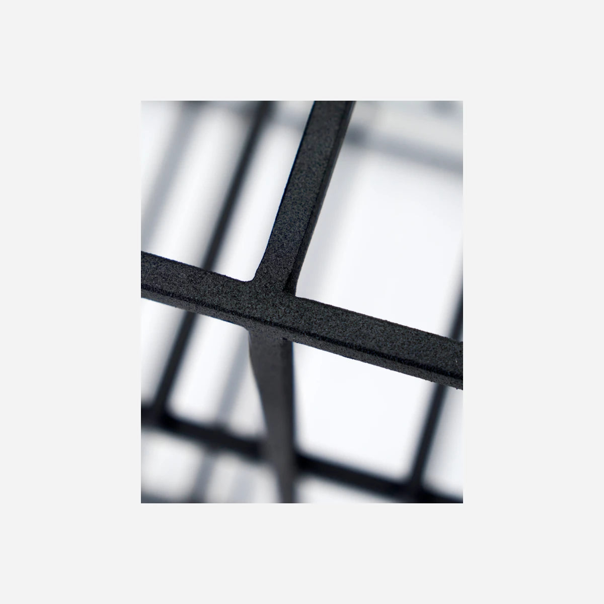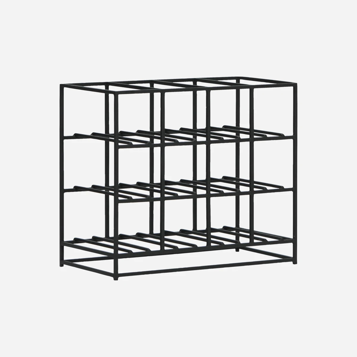 The HD12 wine rack is made of black iron with a clean, geometric design. It provides practical and elegant storage for wine.
