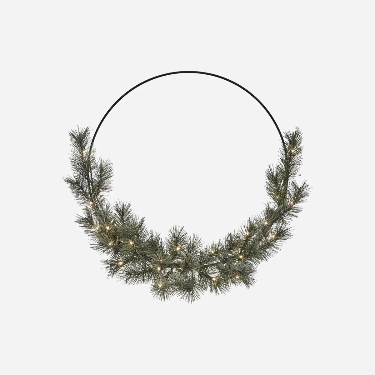 Light up the dark December evenings with this wreath from House Doctor. Finished with 25 LED lights spread throughout the faux fir, it creates an inviting atmosphere no matter where you place it. Use the wreath as it is or decorate it with your favourite ornaments to spread some holiday cheer: be it in your hallway to greet your guests or in the living room window. Thanks to its timer function, you have the option of leaving the lights on for 6 hours in a row.