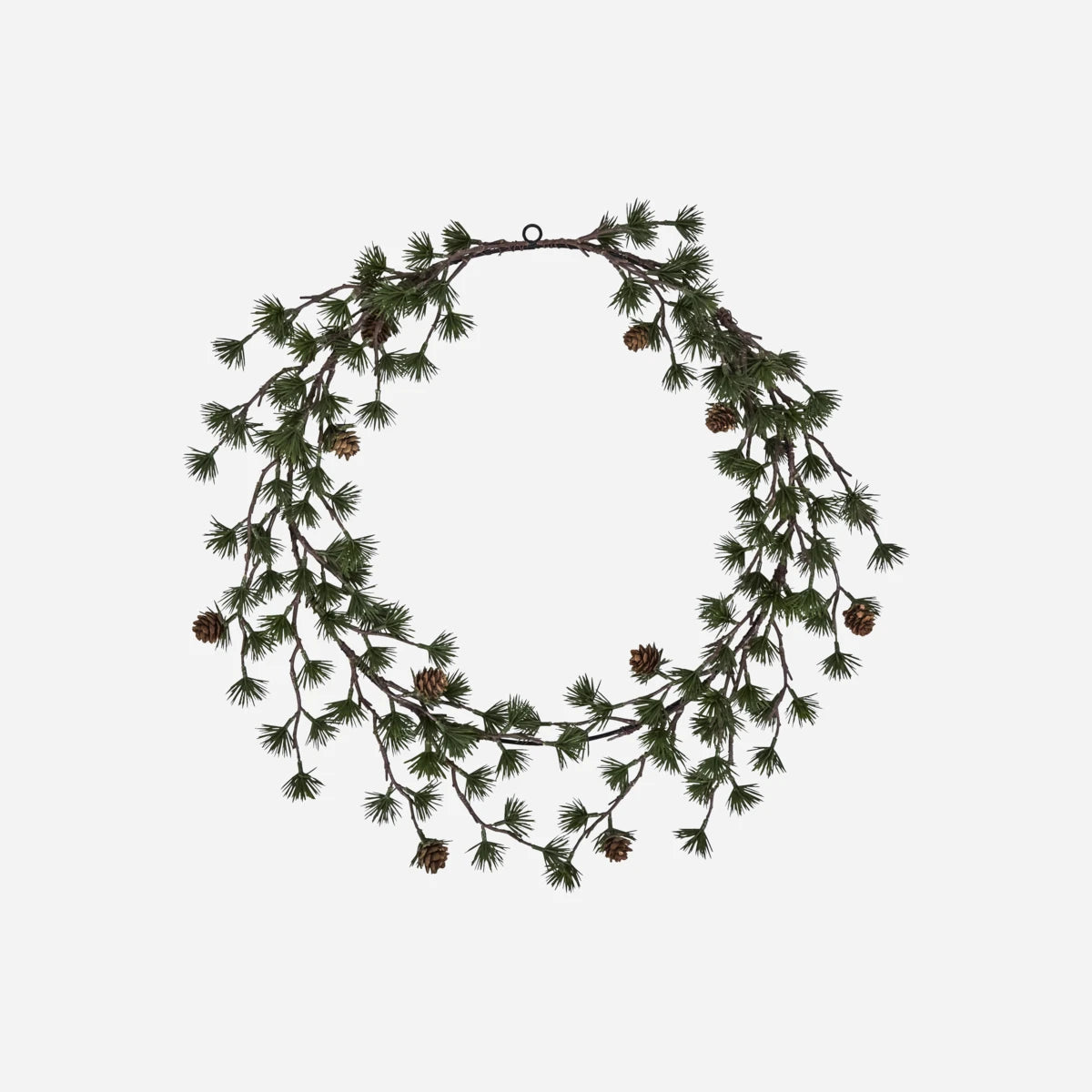 Elevate your festive decor with this exquisite artificial wreath, crafted to bring nature's charm to your home. Made from high-quality polyethylene, it features lush green branches and authentic pinecones for a remarkably realistic appearance. Perfect for adorning your front door or windows, you can personalise this wreath with your favourite Christmas baubles for a unique touch. Its iron wire frame ensures durability, allowing for easy hanging and long-lasting beauty.