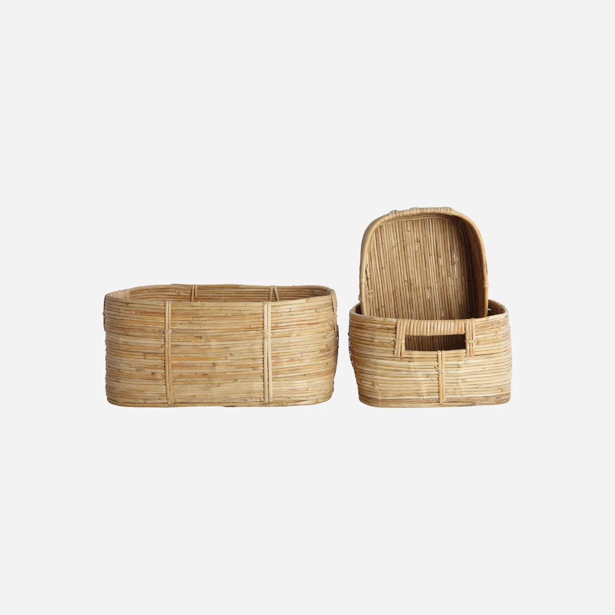 Indret med naturlige materialer og skab en personlig og varm stemning i din indretning. Chaka er et flot kurvesæt fra House Doctor. Sættet består af 3 kurve i i 3 størrelser. Kurvene er lavet af 99% rattan og 1% bambus. Perfekt til den enkle nordiske stil. Kurvene er skabt til opbevaring. Samtidig er de perfekte som en varm kontrast til en let, nordisk stil. En dekorativ detalje, der emmer af nærvær. Brug kurvene til opbevaring i køkkenet, stuen eller badeværelset. Kurvene har hank, så de er nemme at flytte rundt på. Bør kun bruges i et tørt klima.