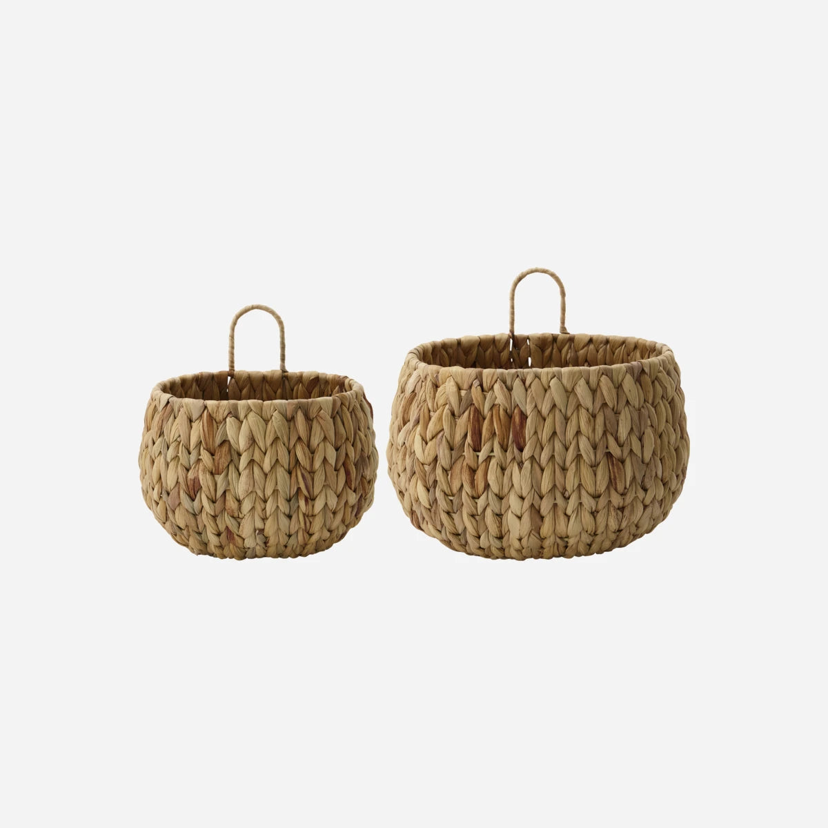 Få dine opbevaringskurve væk fra gulvet med de hængende kurve kaldet Hang. De fås i to størrelser og er designet af House Doctor i blødt vandhyacint. Mønsteret er håndvævet og er et bevis på håndværket bag designet. Hæng kurvene fra kroge i badeværelset som praktisk og elegant opbevaring af toiletpapir, håndklæder eller andre genstande. Det brede, vævede mønster og det naturlige materiale skaber lethed i kombination med fliser, marmor og metaller. Lad hyacint være et gennemgående materiale i badeværelset, stuen og køkkenet for at danne et sammenhængende look i dit hjem.