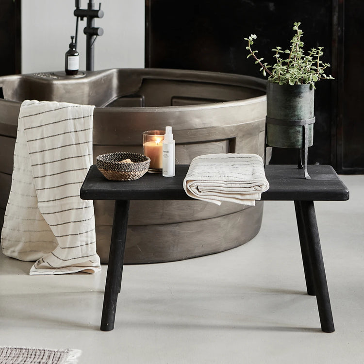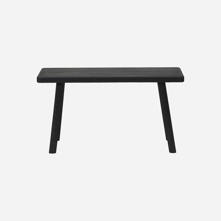 Ekstra siddeplads eller dekorativt element? Mulighederne er mange med Nadi-bænken fra House Doctor. Den er lavet af kejsertræ og har fået en sort farve, hvilket gør den tidløs og alsidig. Brug bænken i entréen, flankeret af lanterner, eller som et praktisk opbevaringssted til kurve. Træ bløder indretningen op, og ethvert rum drager fordel af den naturlige elegance, som denne bænk giver. Fås også i en længere version. Træet er ikke lakeret. Derfor kan bænken over tid vise typiske brugstegn som for eksempel mærker og aftegninger i lyse og mørke nuancer. Dette er dog en naturlig del af designet.