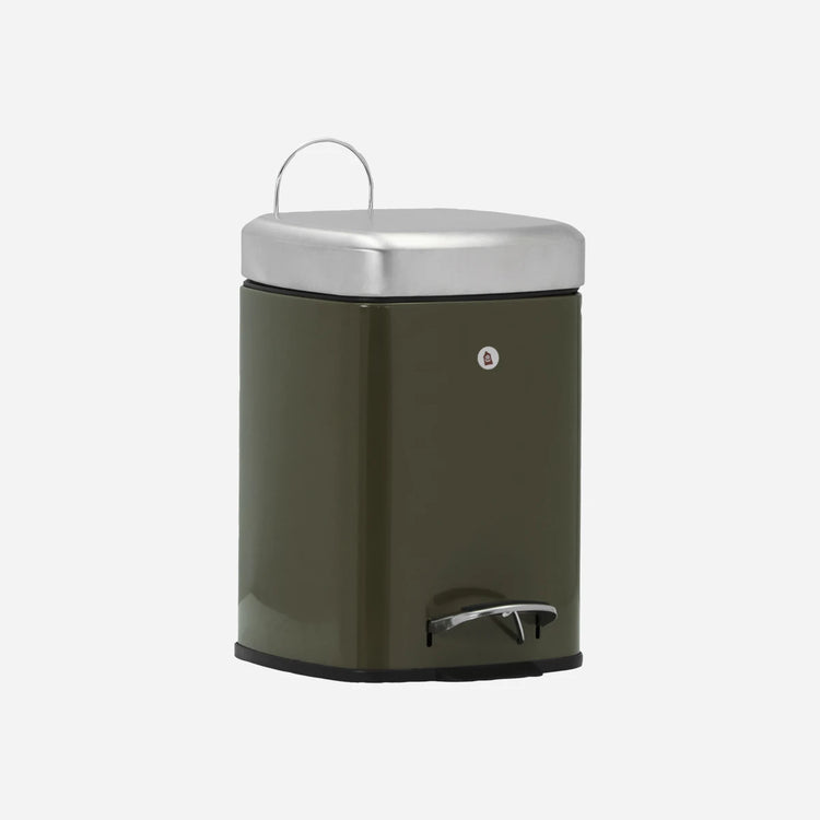 Denne HDSort-spand er fremstillet af slidstærkt stål med en dybgrøn finish. Den kombinerer minimalistisk design med praktisk funktion og tilfører et industrielt touch til køkken, kontor eller bryggers.