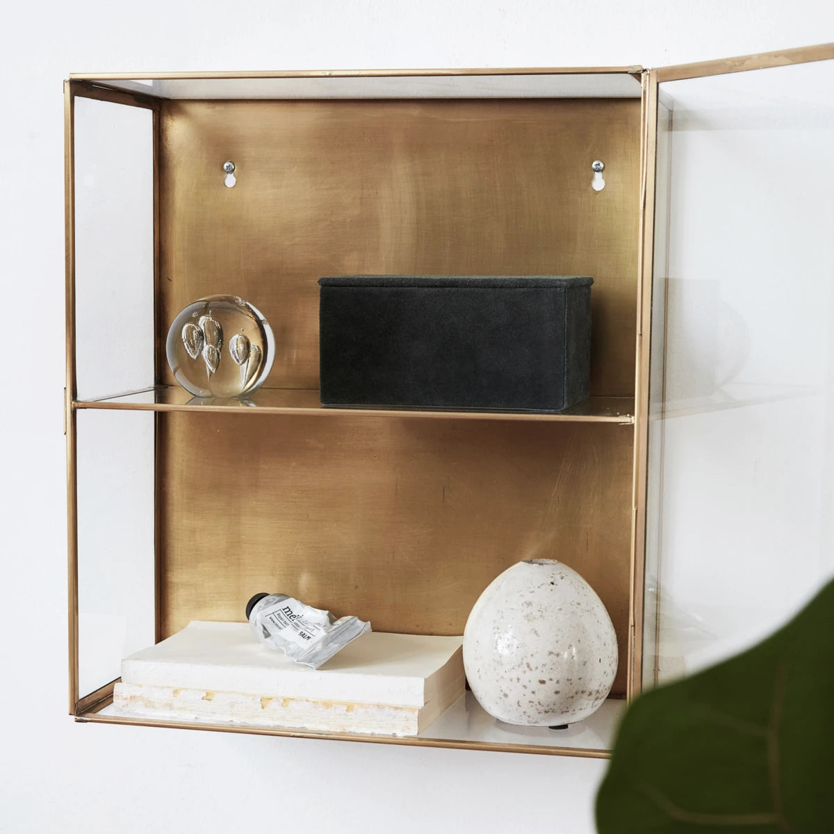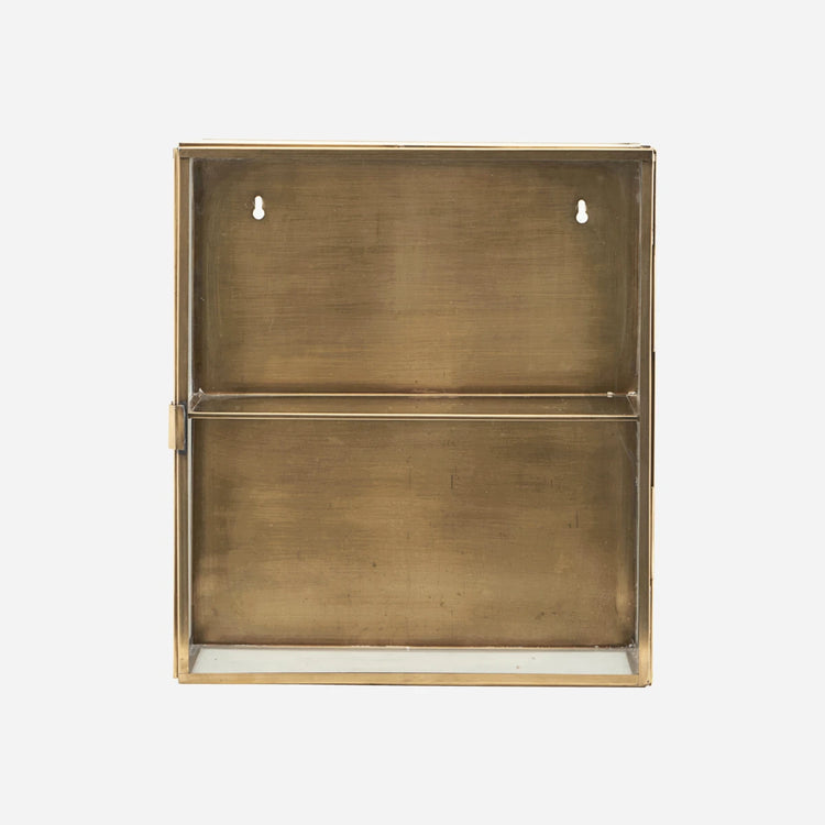 Skab et personligt blikfang i din indretning. Med Glass fra House Doctor får du skab til at hænge på væggen, der er fremstillet i glas og messing. Skabet har en glas låge, messingbaggrund og 1 hylde og skal tørres af med en tør klud. Den flotte messingfarve til skille sig ud i din indretning og tilføje personlighed. Brug skabet til de personlige ejendele, du gerne vil vise frem i din indretning. Måske i soveværelset med dine yndlingsting.