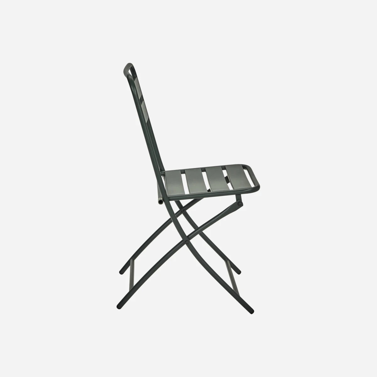 Skab en stilfuld og indbydende atmosfære med dette elegante cafésæt. Sættet har en tidløs mørkegrøn nuance og består af et sammenklappeligt bord og to stole, hvilket gør det perfekt til både indendørs og udendørs brug. Bordet og stolene er lavet af jern og kombinerer funktionalitet og design, så du nemt kan folde dem sammen til opbevaring eller pladsbesparende bekvemmelighed. Tilføj hynder for komfort og stil med dine foretrukne fyrfadsstager for at give dit rum et personligt præg.- Mat grøn pulverlakering- Bord og stole kan klappes sammen- Tidløst og alsidigt design- Ideel til indendørs og udendørs brug.Fuldend din indretning med dette charmerende cafésæt.