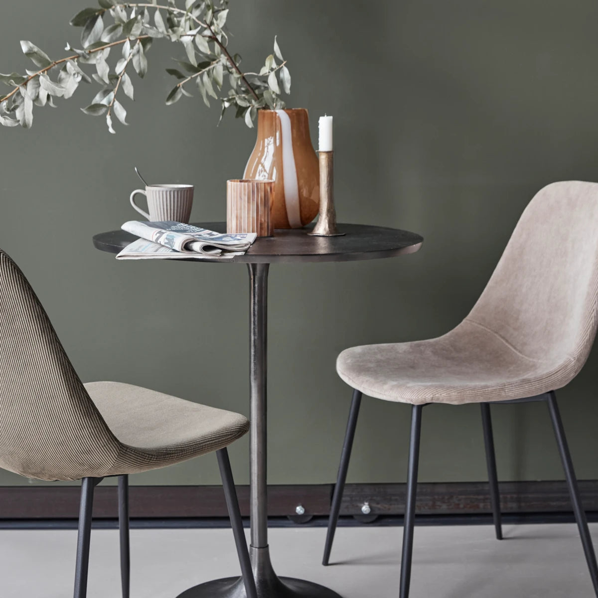 Mangler du et lille spisebord? Dette runde bord fra House Doctor tilfører en fin detalje og lidt tekstur til din spiseplads med sine små, bevidste skønhedsfejl i overfladen. Et tidløst design, som både passer ind og tiltrækker opmærksomheden. Spisebordets størrelse er perfekt til små stuer eller køkkener, men bordet kan også bruges som et alternativ til et sidebord i entreen eller et sted i stuen, hvor du gerne vil samle dine yndlingsvaser og lysestager.