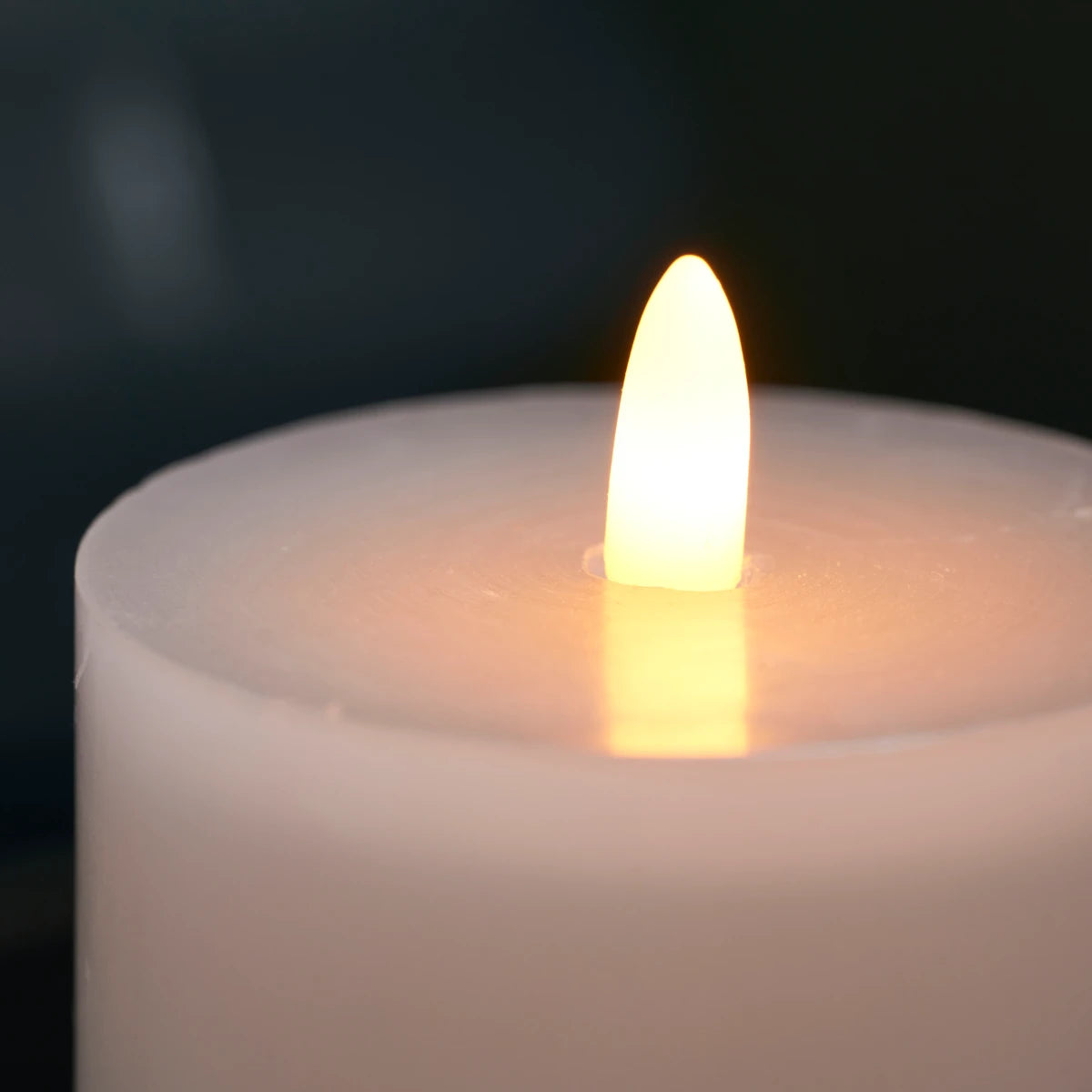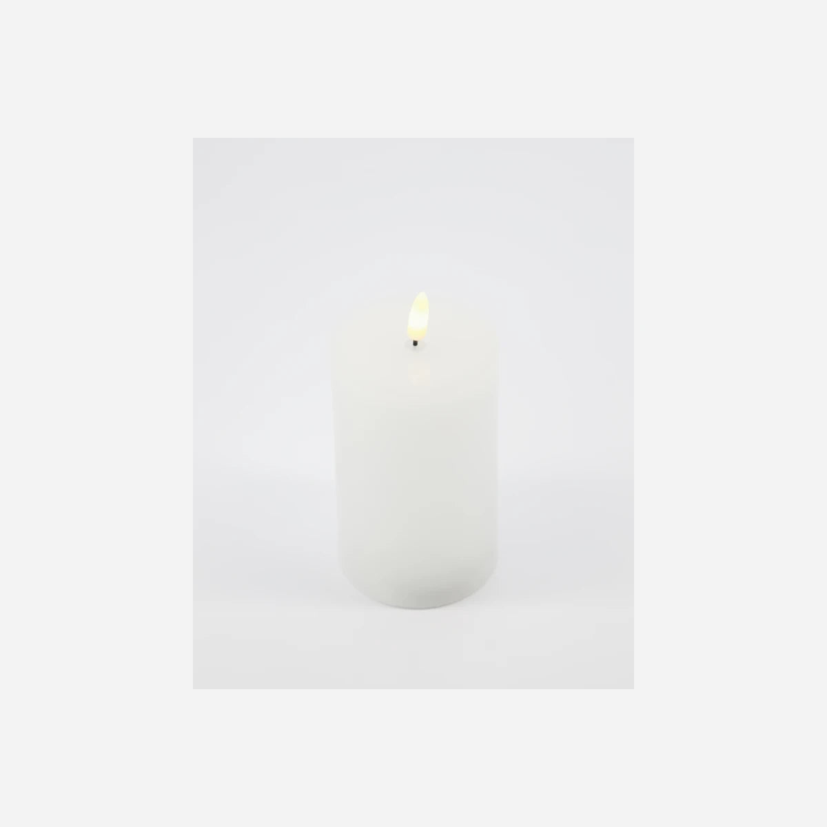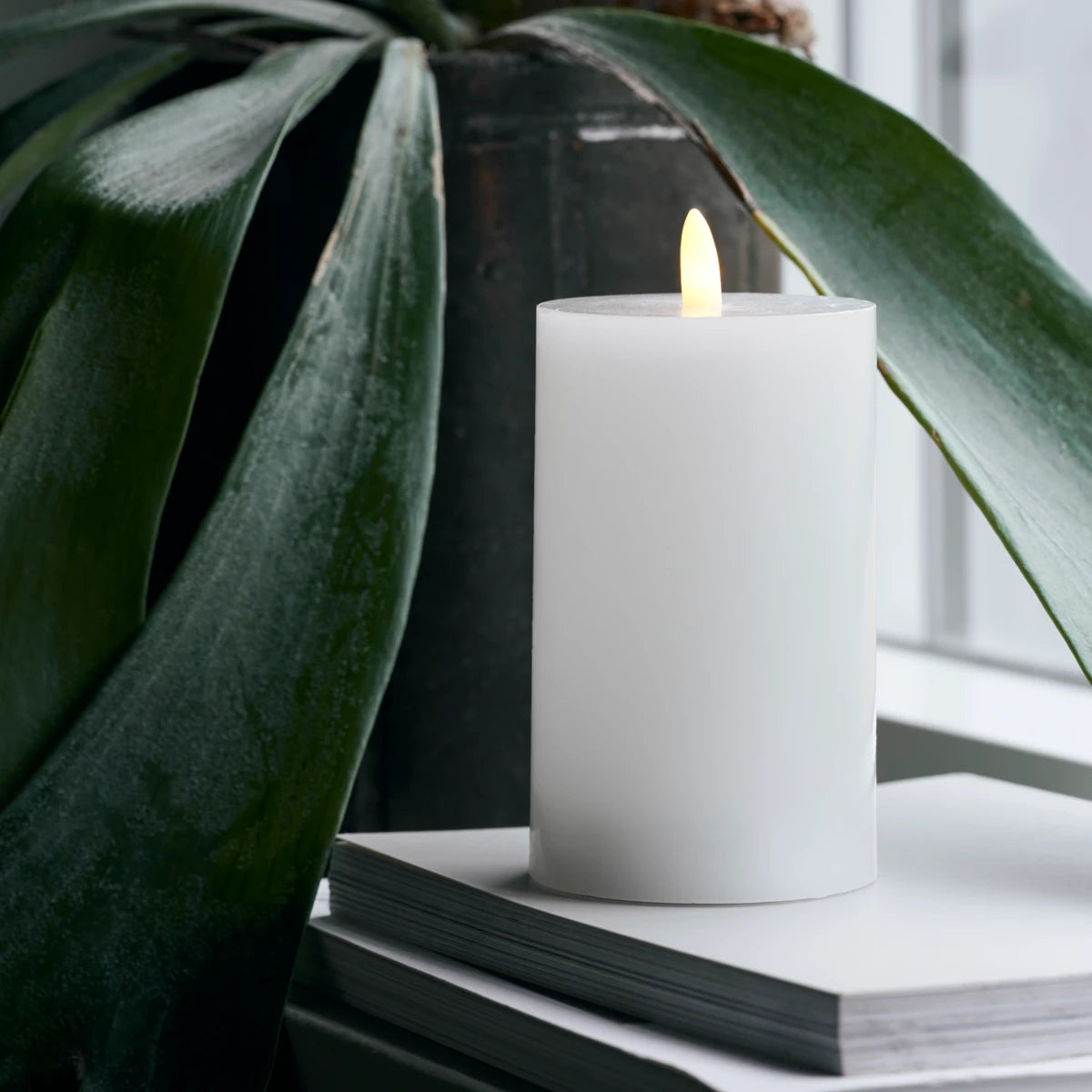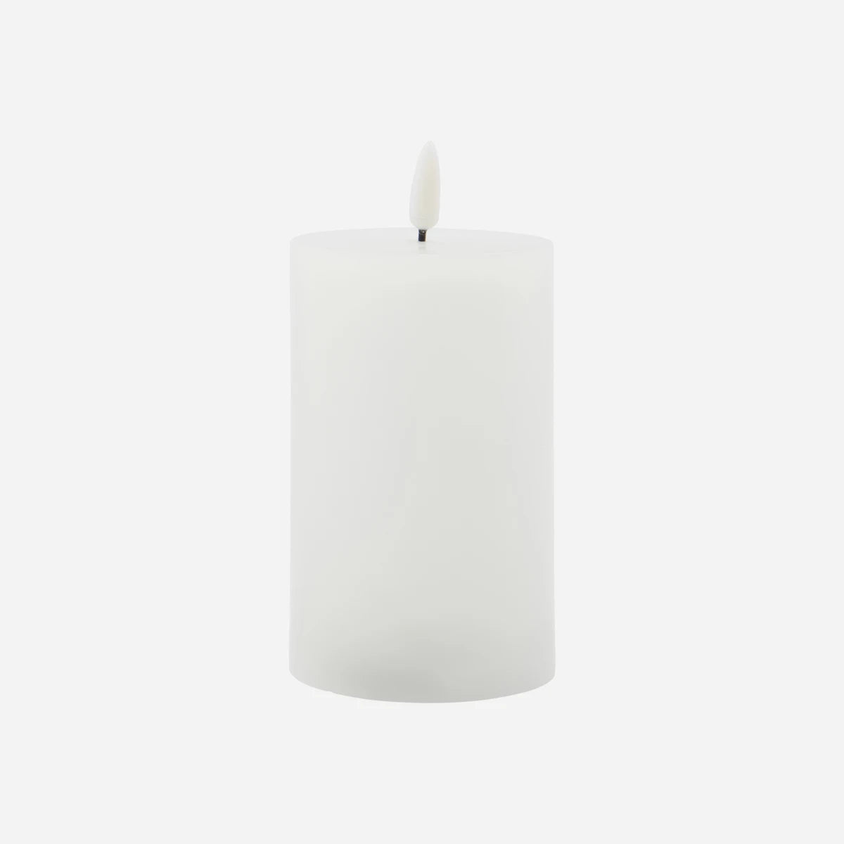 Dette hvide, mellemstore LED-bloklys fra House Doctor er et smukt alternativ til stearinlys. Hvis du vil nyde dine lanterner uden varme, røg og levende lys, så brug dette LED-lys. Det er en god løsning for familier, og ligner et ægte lys med voksoverflade og en varm, flimrende glød. Hvis du glemmer at slukke lyset, vil det automatisk slukke efter fem timer. Anvender 2 AA batterier (medfølger ikke).
