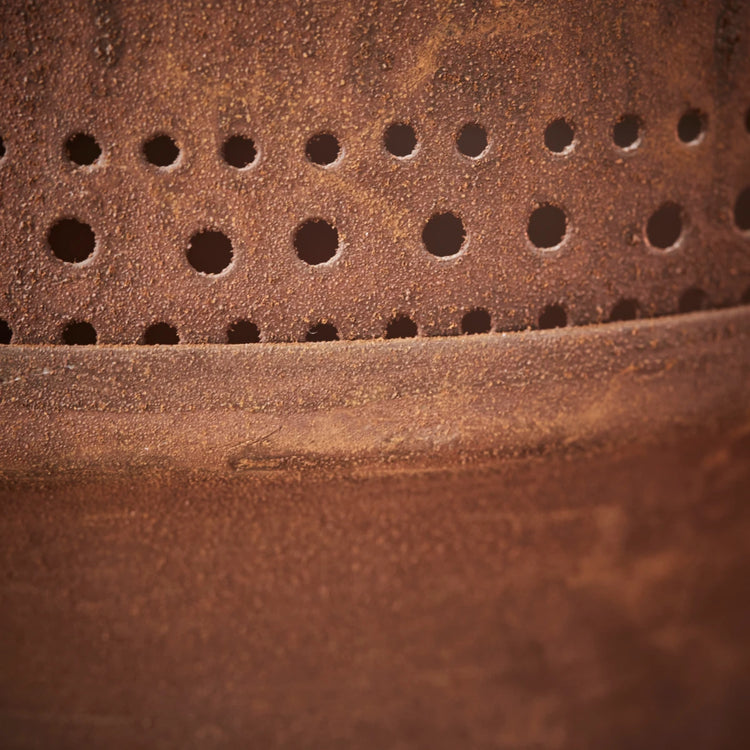 Forvandl dit hjem med denne smukke lysestage, der skaber et varmt og spændende lysspil gennem sit perforerede mønster. Håndlavet af jern i en brændt rød nuance, bliver den et fængslende midtpunkt, når den er tændt.- Unikt perforeret design- Håndlavet håndværk- Varm rustfarvet finish- Perfekt til stemningsbelysningTilføj denne fascinerende lysestage til din dekorationssamling nu!