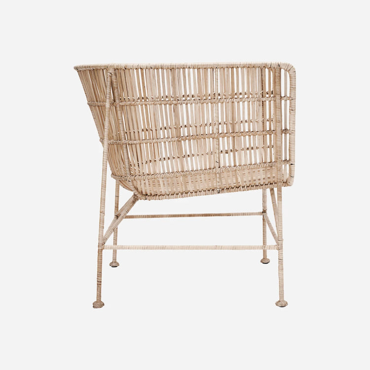 Skab en lækker loungestemning i din indretningen med den flotte Cuun loungestol fra House Doctor. Loungestolen er flettet og fremstillet i rattan med et stel af jern. Dens naturlige look gør stolen enkel, moderne og let at kombinere med andre møbler. Loungestolen kan bruges overalt i boligen, og den er nem at flytte rundt med fra rum til rum. Læg evt. en hynde i stolen og placer en fodskammel foran den. Så er du klar til flere timers hygge med en god bog og en lækker plaid. Kombiner stolen med de andre møbler fra samme serie for et unikt og personligt look i boligen. Produktet er fremstillet af naturmateriale, hvilket betyder, at der kan forekomme variation i farven.