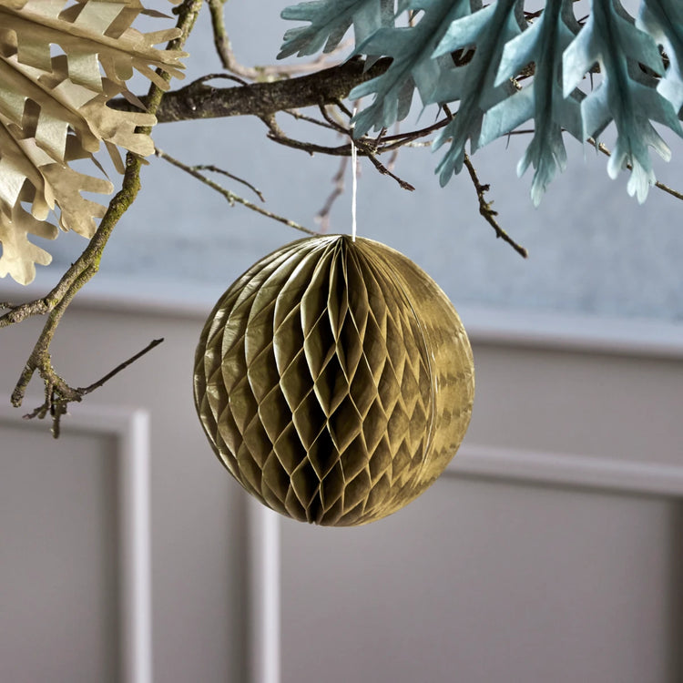 Det gyldne, håndlavede papirornament tilføjer dit julepyntede hjem et strejf af festlig charme og elegance. Dets varme skær og alsidige design passer perfekt ind i ethvert tema, hvad enten det hænger i et vindue eller pryder dit bord.