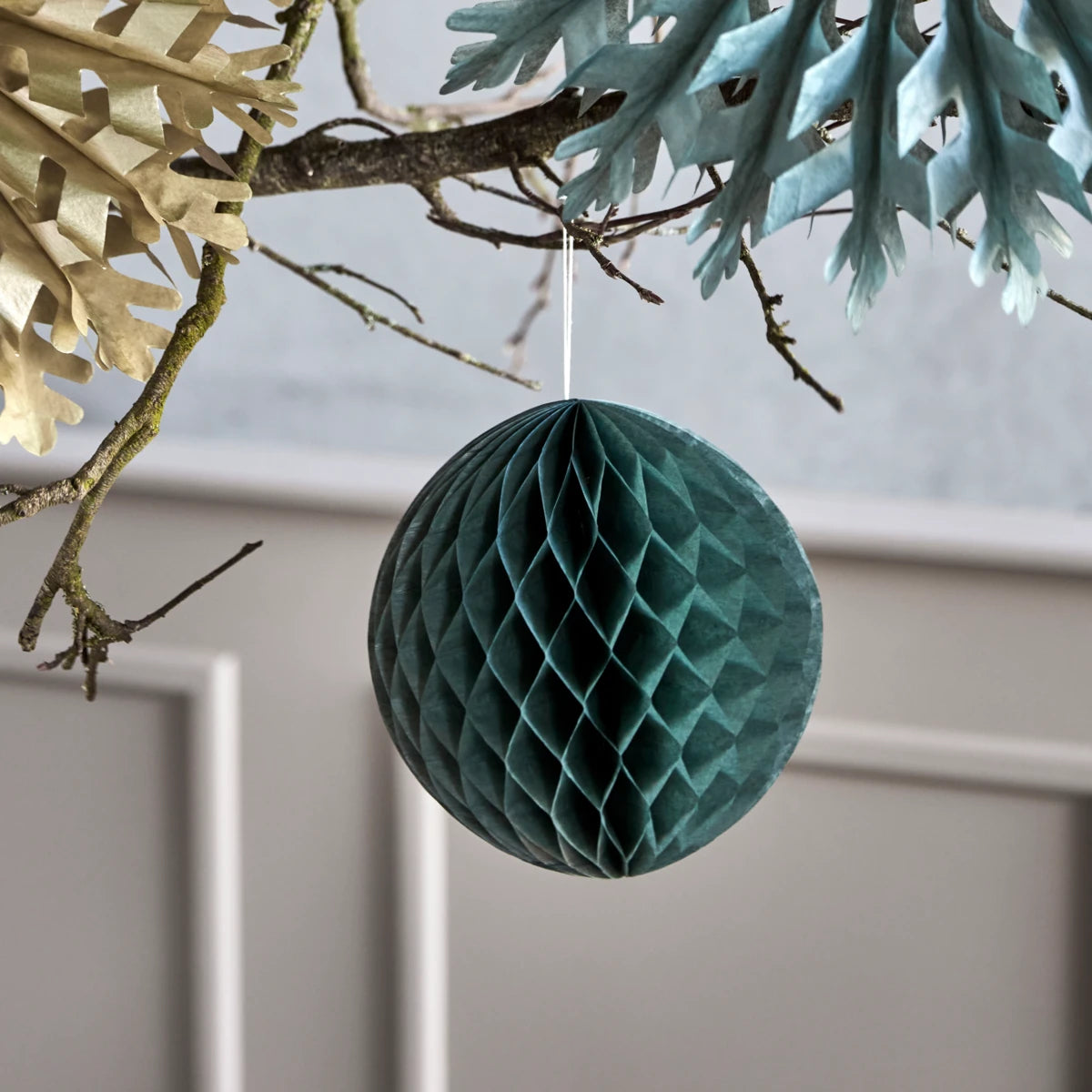 Tilføj dit hjem et strejf af julestemning med disse håndlavede grønne papirornamenter. Med deres runde form og levende grønne farve passer de perfekt ind i ethvert julepyntet hjem og skaber en varm og personlig atmosfære.