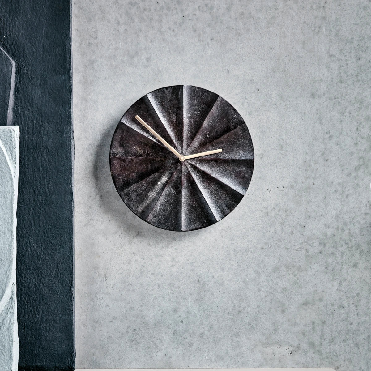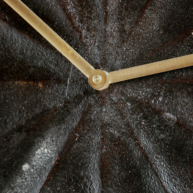 Med dette håndlavede vægur tilfører du dit hjem en kunstnerisk elegance. Uret er fremstillet af støbt aluminium med en brun messingfinish, hvilket gør det til et subtilt og sofistikeret supplement til forskellige indretningsstile.- Håndlavet håndværk- Støbt aluminiumskonstruktion- Elegant bruneret messingfinish- Messingvisere for nem aflæsningGiv dit rum et løft med dette smukt udformede ur.