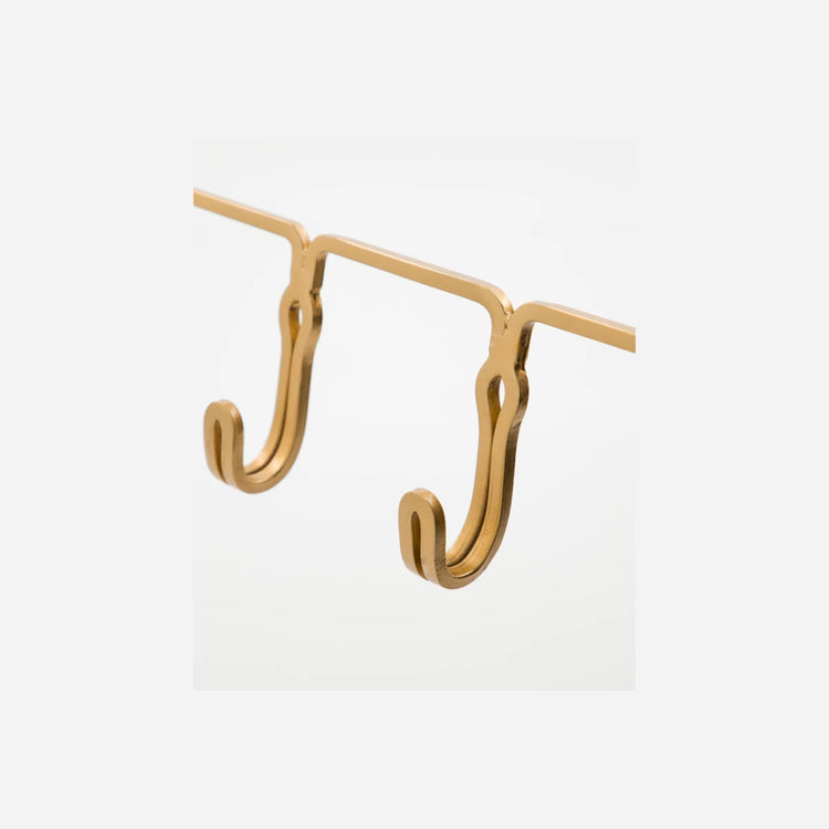Tilføj et strejf af elegance til entréen eller garderoben med denne håndlavede knagerække i messingfinish. Med fem kroge tilbyder den både stil og funktionalitet, hvilket gør det nemt at organisere jakker, hatte og tilbehør. Den kompakte størrelse sikrer, at den passer perfekt ind i ethvert rum.- Håndlavet i jern- Elegant messingfinish- Fem praktiske kroge- Kompakt og alsidigt designFå bedre organisering i dit hjem med denne stilfulde og praktiske knagerække.