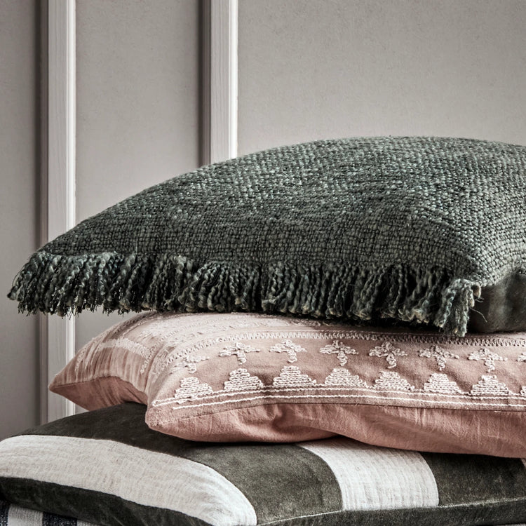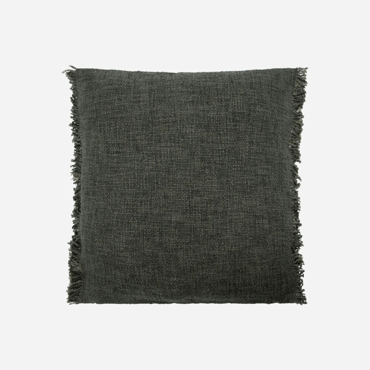 Dette mørkegrønne pudebetræk tilføjer en bohemeagtig stemning til din sofa eller seng med tekstureret stof og frynsede kanter. Det er håndlavet med en blanding af bomuld, hør og lyocell, bringer det varme og stil til ethvert rum.- Bohemeagtigt tekstureret stof- Frynsede kanter- Lynlåslukning- Håndlavet unikumOpgrader din boligindretning med dette udsøgte pudebetræk.