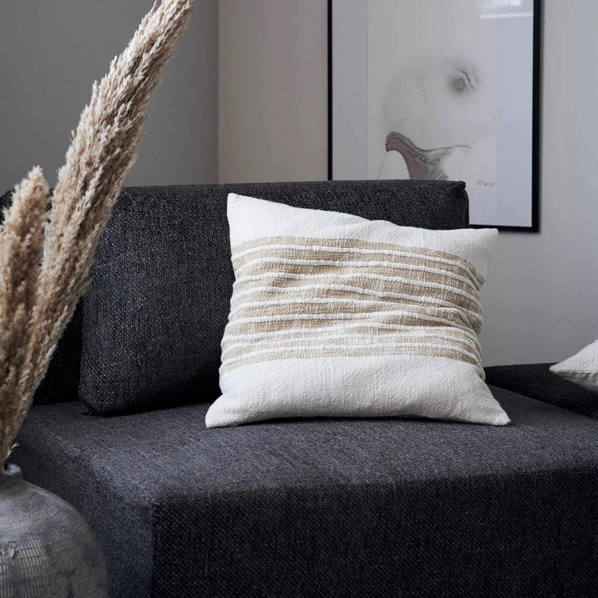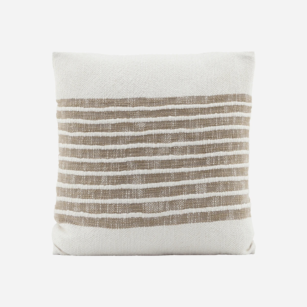 Et nyt pudebetræk kan omdanne dit hjem øjeblikkeligt. Yarn er lavet af bomuld i en tyk vævning, hvilket giver stoffet en vidunderlig tekstur. Forsiden af stoffet har lysebrune striber, mens bagsiden er holdt i en enkel og blød, hvid bomuld. Skab en beroligende stemning ved at bruge den i kombination med andre neutrale farver eller eksperimenter med forskellige materialer og mønstre for at kreere et mere personligt look. Fyld din seng med dekorative puder eller brug dem i din sofa for at skabe den ultimative hyggeligeoplevelse. Pudebetrækket passer til vores firkantede puder (203015000).