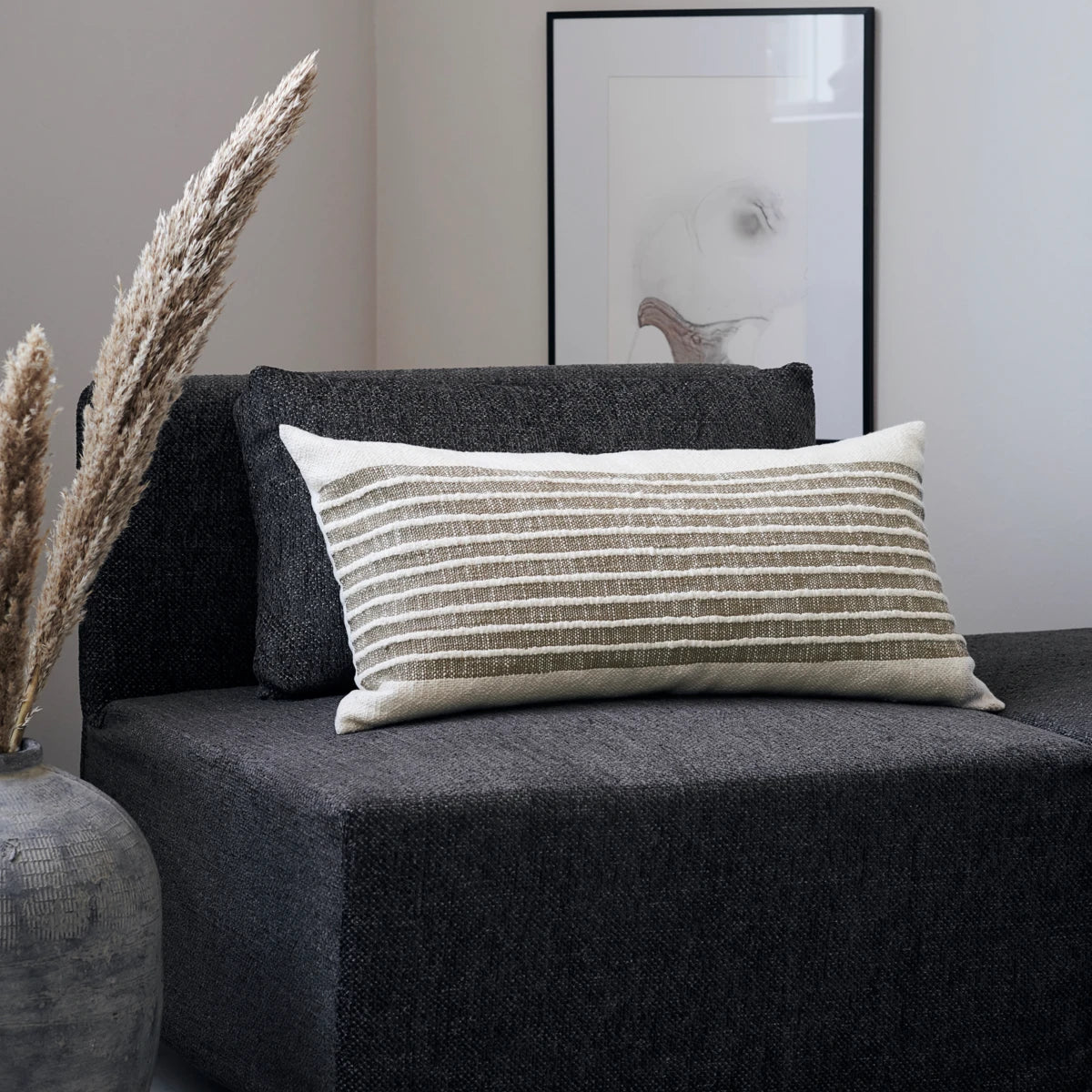 Forvandl stemningen i dit hjem med et nyt pudebetræk. Med sine sennepsfarvede striber vil Garn fra House Doctor sætte et enkelt og diskret touch på din sofa eller seng. Det er lavet af en tyk bomuldsvæv, hvilket giver stoffet ekstra blødhed og tekstur. Bagsiden er holdt i en enkel og blød, hvid bomuld. Skab et roligt look med neutrale farver eller bland mønstre og materialer, for at skabe et mere personligt look. Fyld din seng eller sofa med både rektangulære og firkantede puder, og nyd blødheden. Pudebetrækket passer til vores aflange puder (203014080).