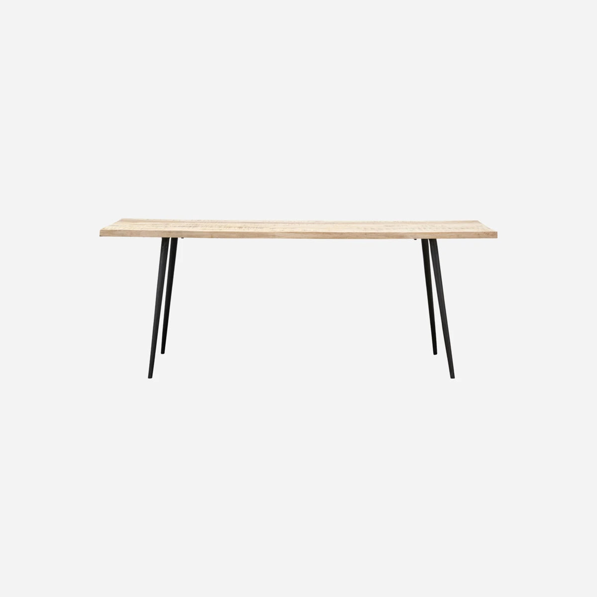 Spisehjørnet er et vigtigt stedi dit hjem. Det danner rammen om mange gode oplevelser. Med Club har House Doctor er kreeret et spisebord i en kombination af lyst mangotræ og jern. Bordet skaber varme og personlighed. Bordet er til dig, der gerne vil gøre lidt ekstra ud af indretningen i køkkenet. Bordet kan tørres over med en fugtig klud. Fordi bordpladen er lavet af mangotræ, kan det have en lettere ujævn overflade. Dette er en bevidst del af designet og er med til at skabe det skønne, rustikke look.