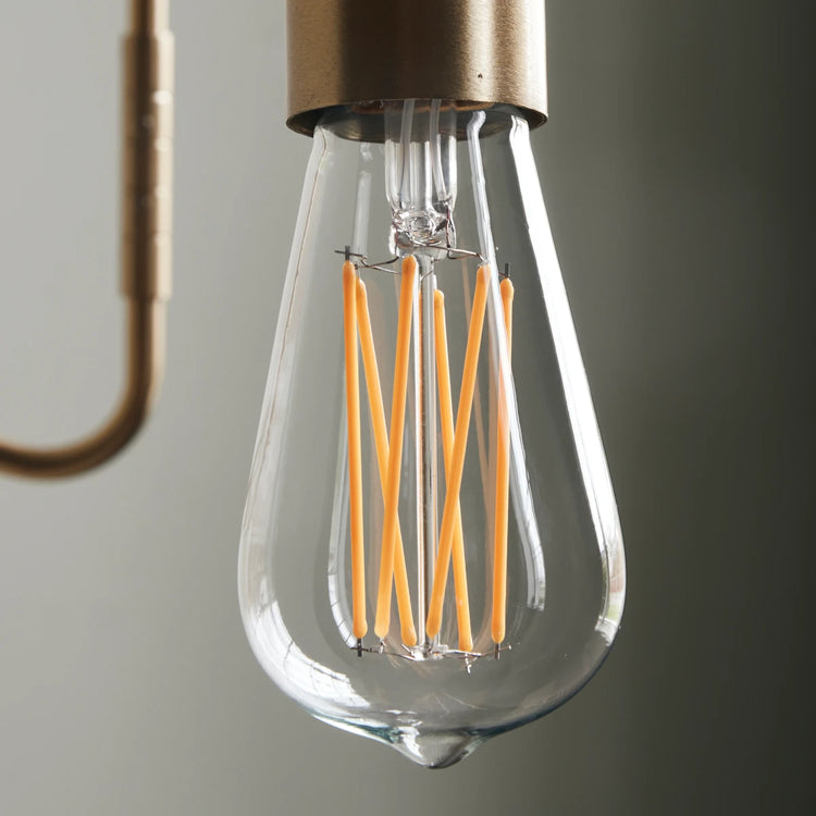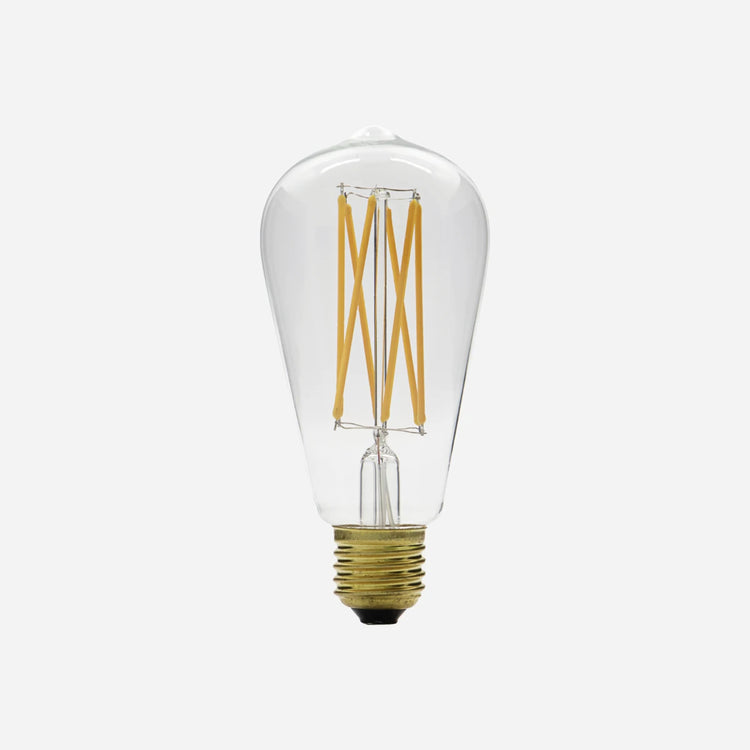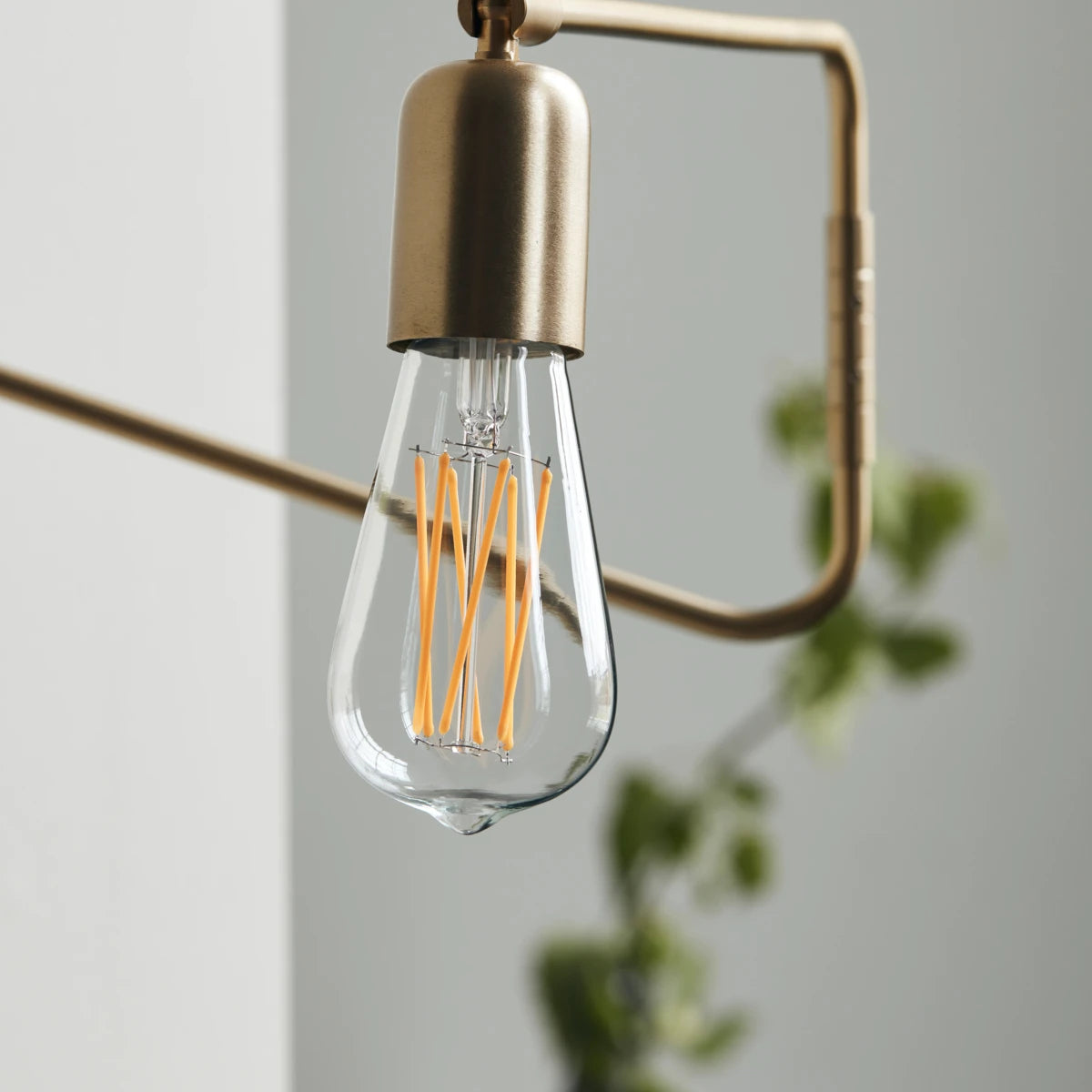 Edison er en dæmpbar E27 LED-pære. Pæren er gennemsigtig, og med 6 filamenter samt en aflang pæreform har den et look, der hylder den klassiske glødepære skabt af Thomas Edison for over 100 år siden. Et vintage look som er ideelt til lamper og fatninger, hvor pæren indgår som del af det samlede design. Her får du et blødt, varmt lys med en naturlig farvegengivelse og en lysstyrke på 300 lumen, hvilket tager sig godt ud i en pendel over spisebordet. Og da soklen er i messing, er pæren mere hårdfør.
