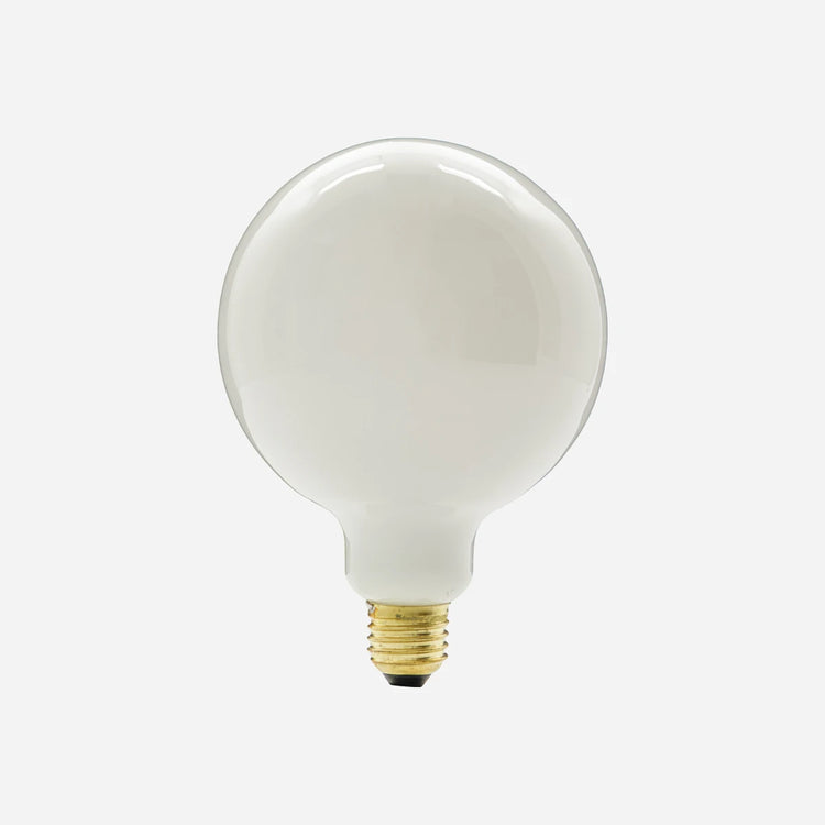 Mega Edison er en rund E27 LED-pære, som tilmed er dæmpbar. Pæren er hvid, og med sin store størrelse tiltrækker den opmærksomhed i rummet. Her får du et varmt hvidt lys - hvidere end den tilsvarende gennemsigtige pære - og en lysstyrke på 200 lumen, som er ideel til svag kontorbelysning. For eksempel i en væglampe eller bordlampe, når du skal arbejde eller læse. Og da soklen er i messing, er pæren mere hårdfør.