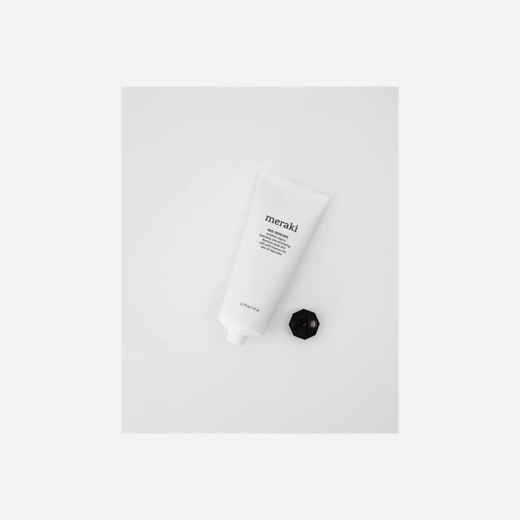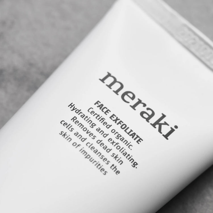 Få en øjeblikkelig glød og en ren, blød hud med denne eksfolierende maske fra Meraki. Små, fine abrikoskerne-granulater fjerner skånsomt urenheder og døde hudceller. For at mindske alderstegn og beskytte din hud indeholder den certificeret økologiske Face Exfoliate rapsolie og et ekstrakt fra brunalger. Begge har en antioxidant effekt, mens brunalgerne ligeledes har en opstrammende effekt, når du bruger produktet som en maske.