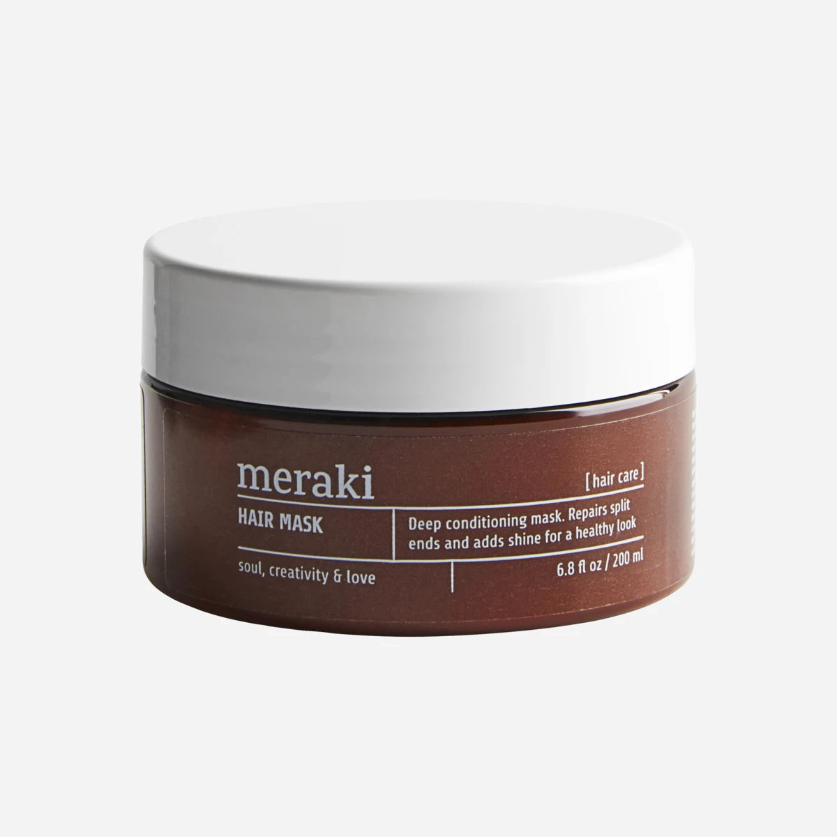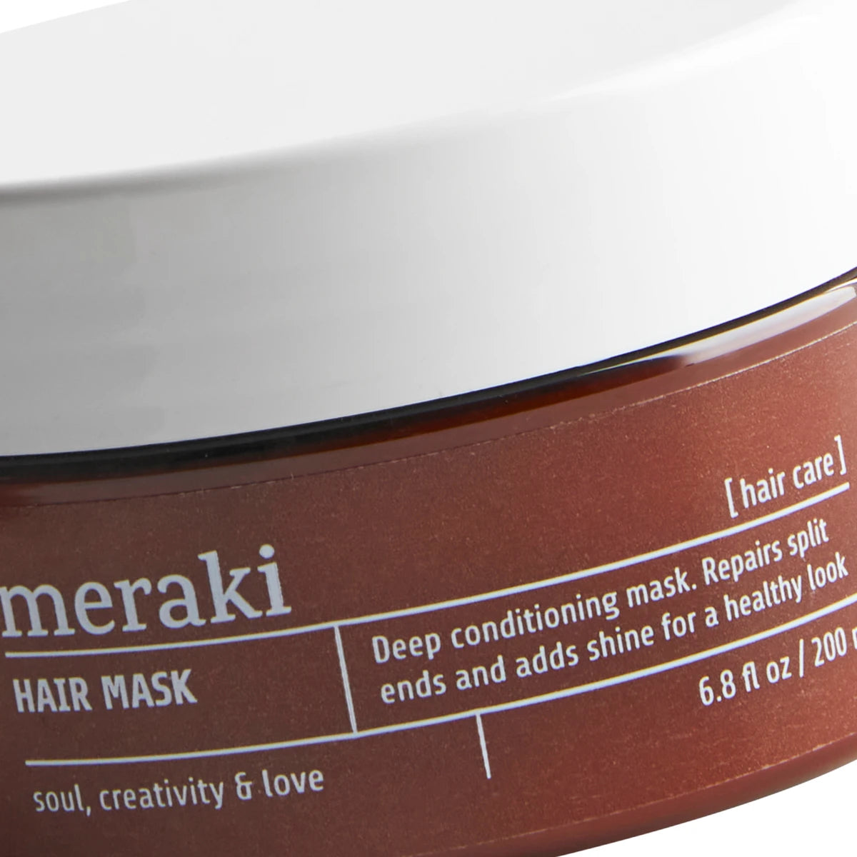 En hårmaske fra Meraki, som trænger dybt ind, reparerer spaltede spidser og giver dit hår et naturligt, sundt udseende. Formlen er rig på et vegetabilsk protein, som reparerer hvert hårstrå indefra og ud for at skabe et glansfuldt hår. Sheasmør, kokosolie og provitamin B5 fugter og giver næring, så du får vidunderligt, blødt hår. Hårmasken har fået en moderne duft med noter af hvide blomster og frisk aqua.
