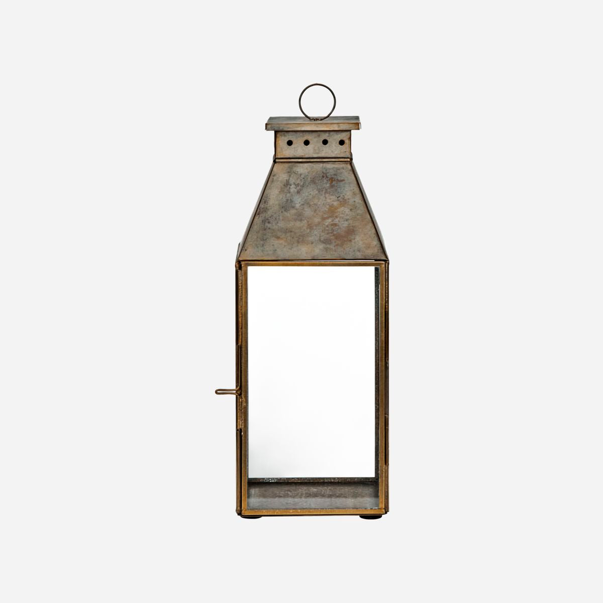 Skab en hyggelig atmosfære i dit hjem med denne håndlavede lanterne. Den antikke messingfinish giver elegance og varme til ethvert rum. Perfekt til belysning på bordet, trappen eller i vindueskarmen.