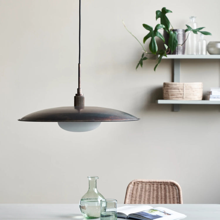 Tilføj et industrielt men stadig elegant touch til din stue med Boston fra House Doctor. Designet skaber en fin balance mellem klassiske former og moderne metal. Den er fuldendt med en lysspreder for at sikre, at lyset ikke blænder og irriterer. En rund pendellampe som denne er ideel at bruge over dit spisebord og passer ind i enhver farvesammensætning og interiørstil. Den vil uden tvivl skabe en hyggelig atmosfære til middage og brætspil med venner og familie. Køb en G9 LED-pære separat. Længde på ledningen: 3m.