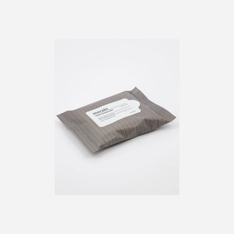 En pakke med 20 makeup renseservietter fra Meraki med aloe vera, E-vitamin og kamille. De fjerner nemt og effektivt din makeup, når du er på farten og ikke er i nærheden af din makeupfjerner. Brug en renseserviet til at fjerne mascara og makeup på en hurtig og nænsom måde.