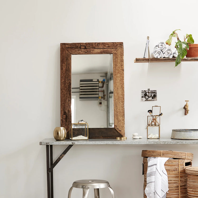 Spejle og naturmaterialer er in i boligens indretning. Med Pure Nature omfavner House Doctor begge tendenser. Spejlet er en unik vare. Den flotte træramme er lavet af genbrugstræ. Den brede ramme giver spejlet et rustikt look, der giver masser af varme og personlighed til din indretning. Hæng spejlet som en dekoration i din indretning eller som et praktisk spejl i entreen eller på et værelse. Da der er tale om en unik vare, vil der forekomme variationer og uregelmæssigheder i spejlets finish.