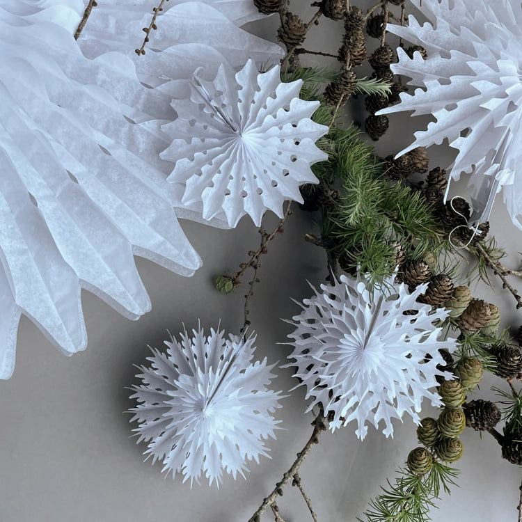 Gør indretningen en tand mere elegant med dette sæt med 12 papirvifter i 3 forskellige designs. De håndlavede, hvide Fold-vifter er fuldendt med detaljerede udskæringer, der pryder ethvert hjem. Hæng dem på en gren i en gulvvase, på væggen eller gør dem til en del af dine juleudsmykning. Uanset hvor og hvornår du bruger Fold-vifterne, sørger de for et strejf af nostalgi.
