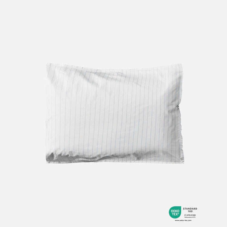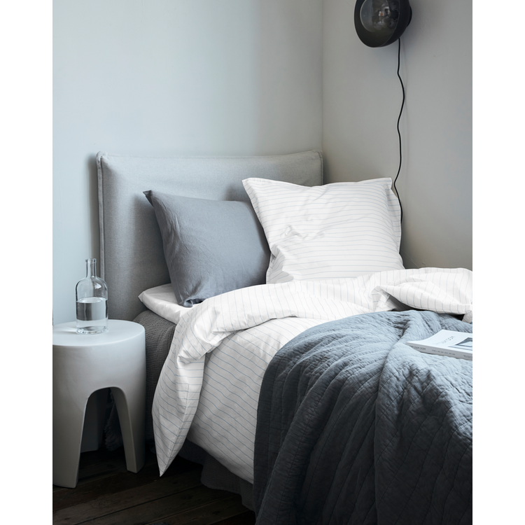 Et sprødt og åndbart pudebetræk giver dig en vidunderlig nats søvn. Dette design hedder BNDagny, lukkes med en kuvertlukning og kommer i en lys farve med blågrå nålestriber. Takket være en enzymvask er det ekstra blødt at røre ved. Det er lavet af OEKO-TEX® 100 certificeret økologisk bomuld i en tæt percalevævning, som giver dig et lækkert og åndbart pudebetræk at hvile hovedet på. Match det med dynebetrækket fra byNORD i samme design for et strømlinet look eller bland med mørkere farver for et personligt look. Uanset hvad får dit soveværelse et strejf af nedtonet luksus.