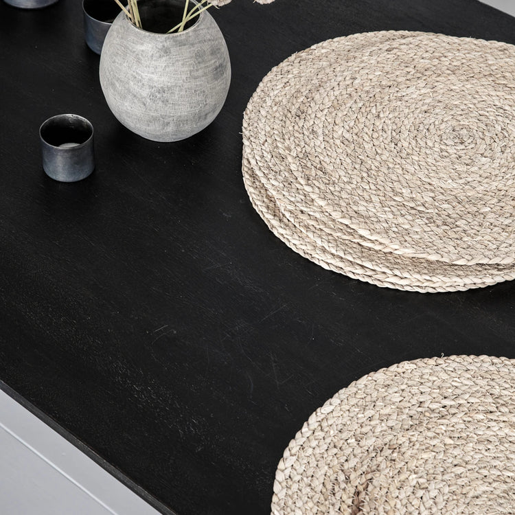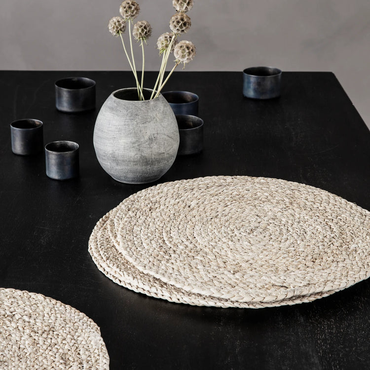 Dæk bordet til den helt store fest med denne pakke med 4 smukke dækservietter fra House Doctor. Dækservietterne, Circle, er lavet i et skønt naturmateriale, der vil tilføre en helt særlig varme til et veldækket bord. De fine dækservietter er med til at sætte de perfekte rammer, når bordet skal dækkes op til fest. Kombinér de enkelte dækservietter i naturfarven med hvilket som helst stel for at fuldende looket. Uanset hvilken farve eller form dit stel må have vil servietterne pryde derunder. Der ligger 4 dækkeservietter i hver pakke. Mål: Dia.: 38 cm.