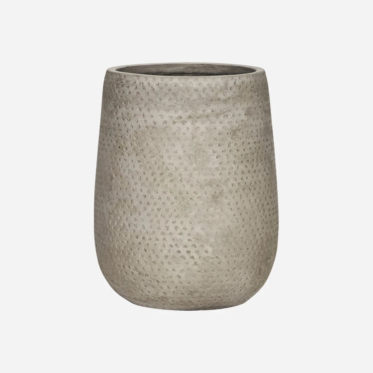 Dette sæt med to potteskjulere fra House Doctor tilfører et moderne look til dit udendørsområde. Potteskjulerne er lavet af cement, de har et diskret mønster, og de får enhver plante til at se flottere ud og gør dig i godt humør. Brug disse og andre potteskjulere til at skabe en personlig opstilling, der tilfører både liv og ro til indretningen, så dit udendørsområde er perfekt til både afslapning, sammenkomster og sommermiddage. Bemærk, at potteskjulerne har drænhuller. Når vand fryser, udvider det sig, og det kan medføre, at potteskjulerne springer om vinteren. Derfor skal du sørge for, at vandet drænes korrekt, og at potteskjulerne beskyttes mod regn og sne.