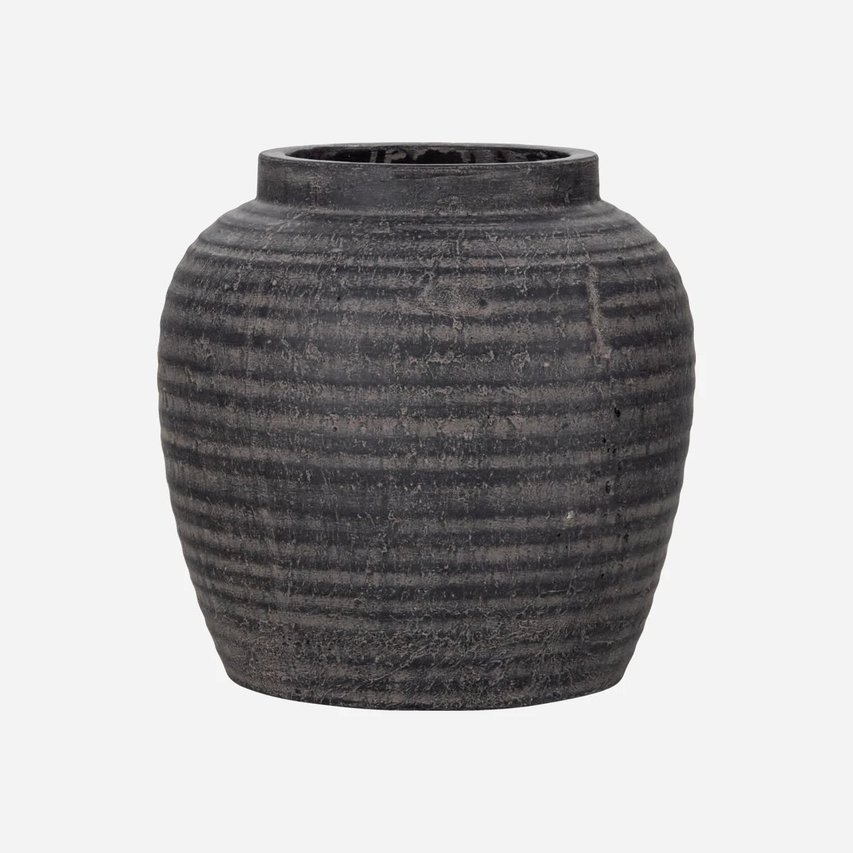 Tilføj dimensioner og tekstur til din indretning med denne alsidige potteskjuler. Dette design fra House Doctor har en let rillet overflade og en mørk farve, der tilfører dybde og gør, at potteskjuleren passer ind overalt i dit hjem. Den tilfører dit hjem en rolig og moderne stemning, uanset om du sætter planter og blomster i den eller ej. Stil den på gulvet, på et sidebord eller på et konsolbord for at tilføje en fin detalje og et naturligt touch til din indretning. Denne håndlavede potteskjuler har et rustikt look og er porøs. Derfor følger der en indsats med for at beskytte overfladen under potteskjuleren.