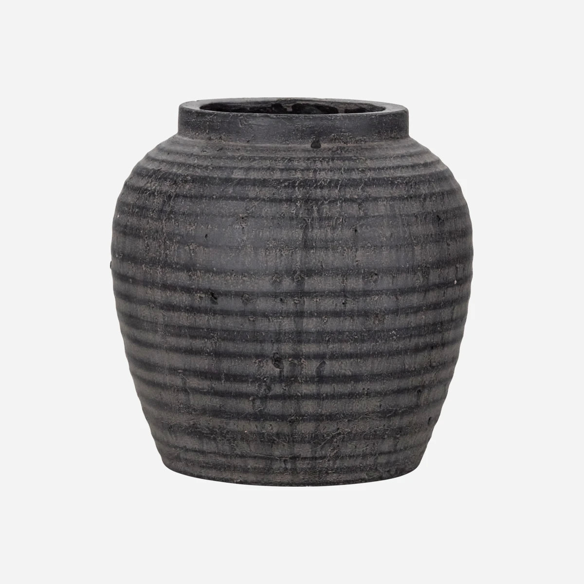 Tilføj dimensioner og tekstur til din indretning med denne potteskjuler fra House Doctor. Den let rillede overflade og den mørke farve tilfører dybde og alsidighed, uanset hvor du stiller potteskjuleren. Den tilfører dit hjem en rolig og moderne stemning, uanset om du sætter planter og blomster i den eller ej. Stil den på gulvet, på et sidebord eller på et konsolbord for at tilføje en fin detalje og et naturligt touch til din indretning. Denne håndlavede potteskjuler har et rustikt look og er porøs. Derfor følger der en indsats med for at beskytte overfladen under potteskjuleren.