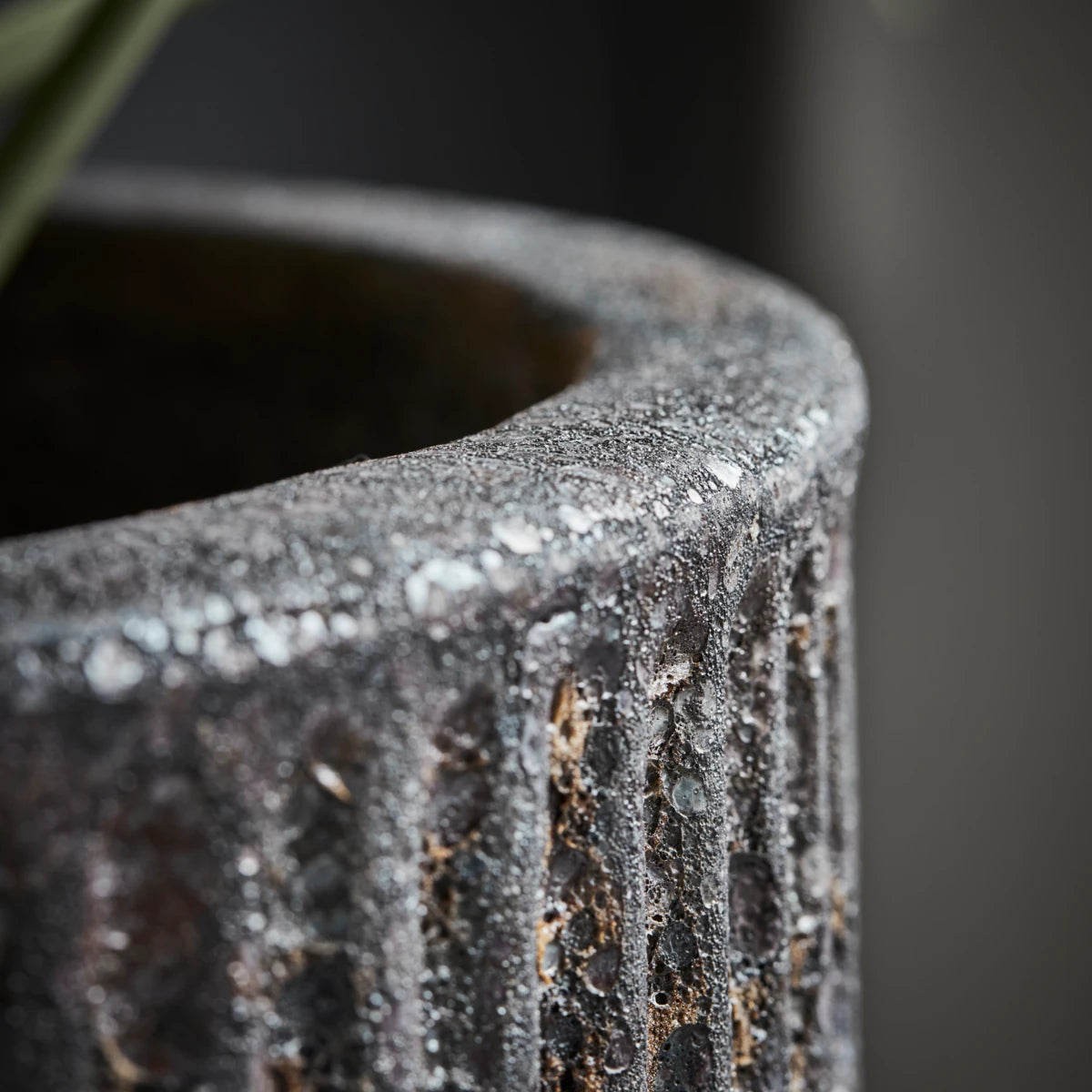 Forvandl dit hjem med disse udsøgte håndlavede urtepotter. Hver enkelt keramikpotte har en unik rillet tekstur og en særpræget, varierende grå glasur. Derfor er ingen af potterne er ens. Disse potter er perfekte til at fremvise dine yndlingsplanter og passer problemfrit ind i enhver indretningsstil.- Unik rillet tekstur- Særpræget grå glasur- Håndlavet for unikhed- Alsidig til enhver indretningLøft dit rum med disse smukke urtepotter.