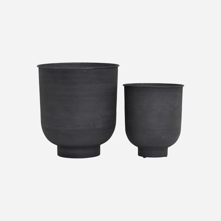 Grønne planter er blevet populære i indretningen. Med Vig potte fra House Doctor, får du en smuk potte der tilfører liv og personlighed i dit hjem. Potterne er lavet af jern som giver et unikt og smukt udtryk. Den smukke grå farve passer godt til grønne planter og passer ind i de fleste indretninger. Potterne kommer i et sæt med 2 potter i 2 forskellige størrelser.