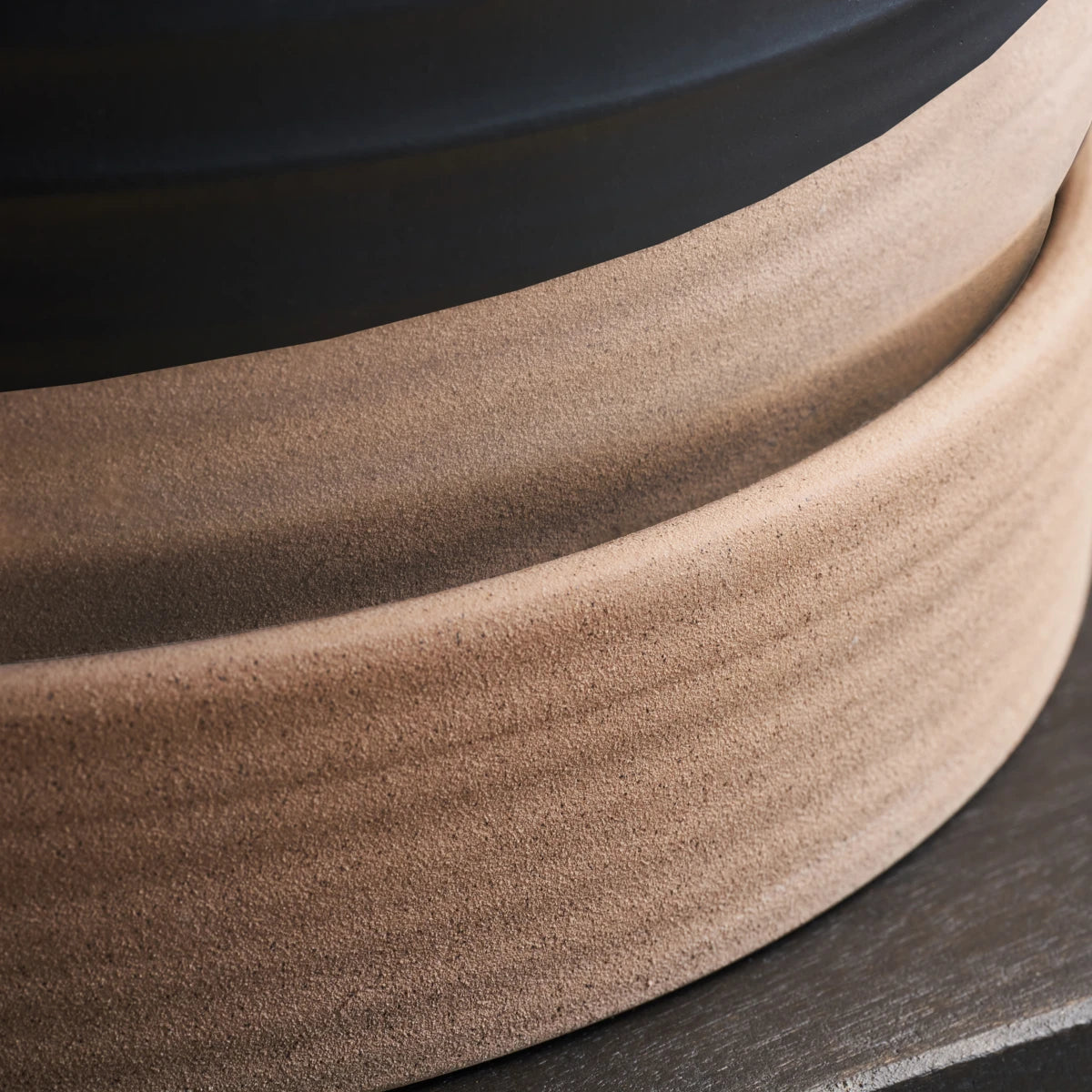En enkel og moderne tilføjelse til din boligindretning. Dette sæt med tre stentøjsurtepotteskjulere med underskåle fra House Doctor indeholder tre forskellige størrelser, der giver dig adskillige muligheder for at forskønne din stue eller gang med planter. Glasuren, der er en kombination af sort og sandfarvet, giver designet et kontrastfyldt og ikke mindst moderne look. Placer urtepotteskjulerne sammen eller forskellige steder i din stue for at skabe et sammenhængende look. Et så alsidigt design gør det nemt at dekorere med disse urtepotteskjulere.