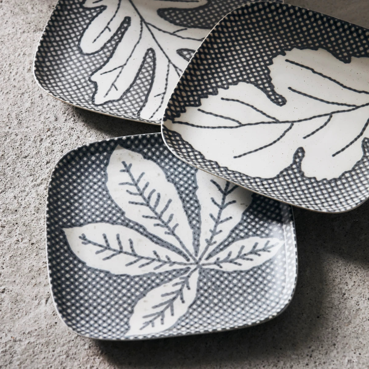 Forny dit frokostbord med denne tallerken i keramik fra House Doctor. De matte grå og hvide farver fungerer som en fin baggrund for bladmotivet, mens den firkantede form blødgøres af de afrundede hjørner. Ved første øjekast kan Ash-tallerkenen skabe en retro-følelse. Men det hele afhænger af de ting, som du kombinerer den med. Ved at kombinere den med vores sortiment af bladmotivtallerkener eller tallerkener og skåle i andre materialer og farver viser, at du har gjort meget ud af at skabe en unik og flot bordopdækning.