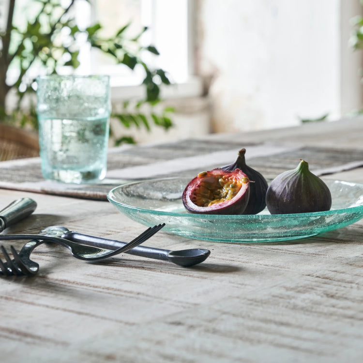 Skab en let og farverig borddækning med disse to små tallerkener fra House Doctor. Ser du nærmere efter, vil du bemærke de små luftbobler i det blågrønne glas, som tilføjer lethed og et afslappet præg til designet. Et design som virkelig skiller sig ud på dit havebord denne sommer. Rain-tallerkenerne er ideelle sammen med glassene fra samme serie, når vi invitere vennerne over til middag eler blot en hyggestund.
