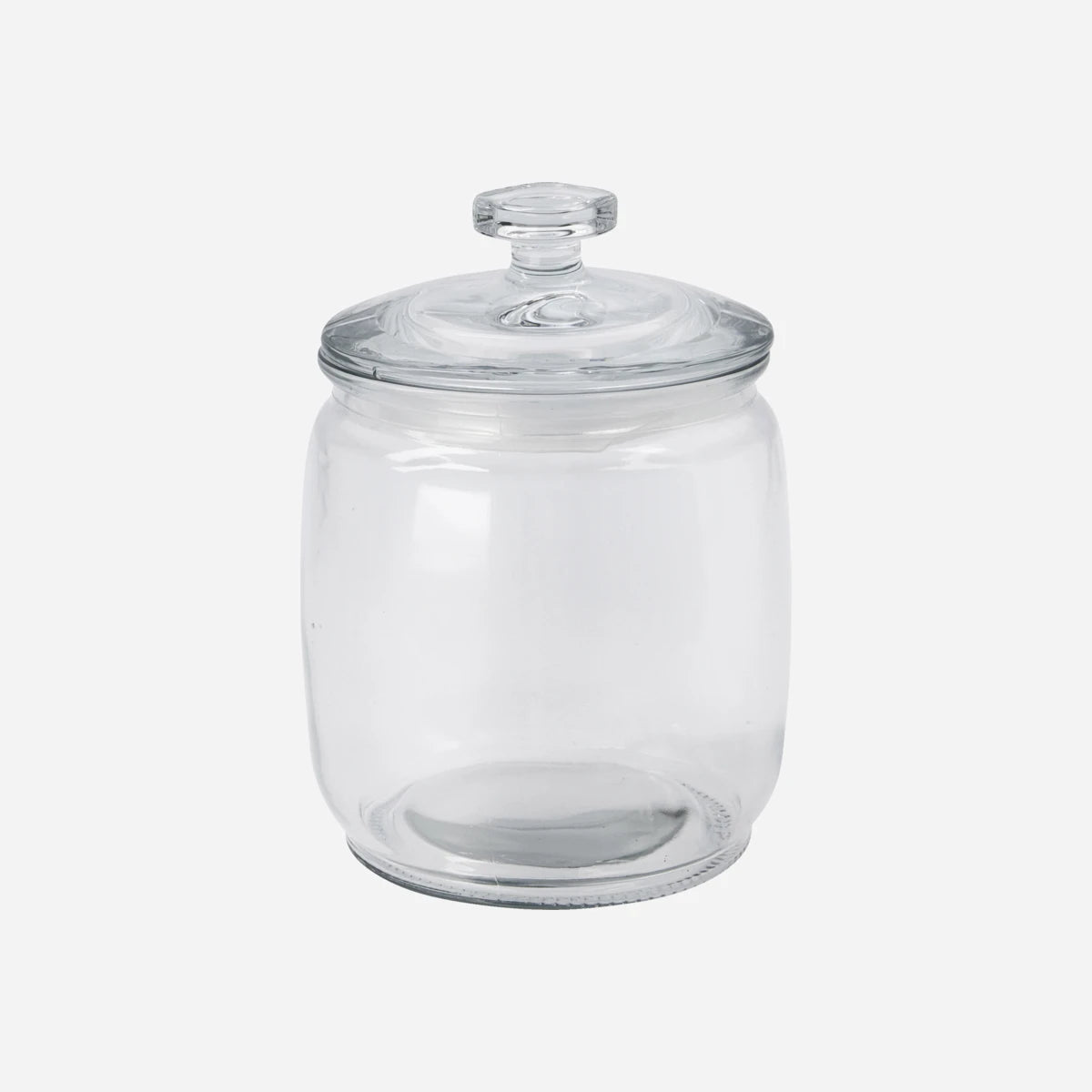 Brug den lille glasbeholder med låg ved navn Ville med låg til at at opbevare dine nødder, snacks og andre madvarer. Med sit enkle og stilrene look holdes din køkkenindretning lys og funktionel, ikke mindst når du placerer en række glasbeholdere på en hylde eller køkkenbordet. Udover at du har nem adgang til den mad, du bruger hver dag, tilføjer indholdet af krukkerne fra House Doctor også et touch til din indretning. Kombiner med Ville-beholderne i andre størrelser og få på fin vis styr på din opbevaring.