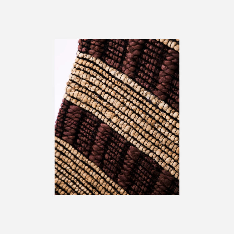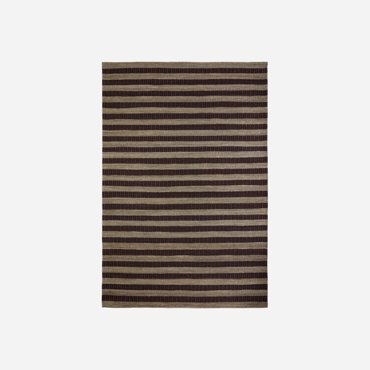 Det håndlavede tæppe i brune og naturlige nuancer giver varme, struktur og et klassisk udtryk i din indretning.