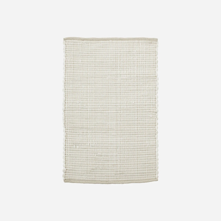 Gør din indretning lysere og blødere med dette hvide, rektangulære tæppe ved navn Chindi, som er designet af House Doctor. Da det er lavet af bomuld, er det slidstærkt og ideelt til hverdagsbrug, da det kan modstå en del og er nemt at holde. Med den enkle vævning passer tæppet fint ind i enhver stil og trækker den i en naturlig og afslappet retning. Placer tæppet der, hvor du ønsker at lysne og gøre rummet blødere. På badeværelset, for enden af sengen, i entréen. Alsidigheden ved dette tæppe kender ingen grænser. Bemærk at bagsiden ikke har antiskrid.
