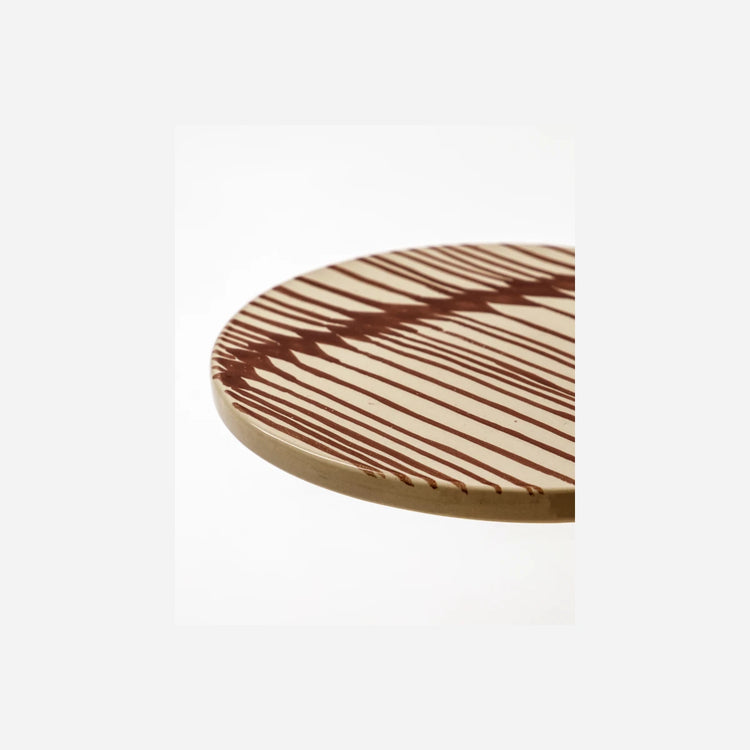 Tilføj et moderne touch til din madoplevelse med disse keramiske serveringsbrætter. Dette sæt med to stentøjsstykker har et minimalistisk design med håndmalede brune striber, der tilbyder en stilfuld og funktionel tilgang til servering. Ideel til tapas, oste eller desserter, de giver et perfekt delebræt for to, uanset om du nyder te, kaffe eller et glas vin. - Sæt med 2 dele - Håndmalede brune striber - Perfekt til ost eller tapas - Ideel til deling mellem to Tilføj disse elegante serveringsbrætter til din spisesamling i dag.