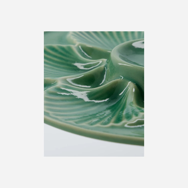 Tilføj et strejf af elegance til dit spisebord med denne håndlavede grønne serveringsplade i stentøj. Dens blanke glasur og tidløse design gør den perfekt til at præsentere østers eller en række andre retter. Denne tallerken fuldender ikke kun din borddækning, men skaber også en indbydende atmosfære med sin unikke karakter og stil. - Håndlavet stentøjsstykke - Blank grøn finish - Ideel til alsidig servering - Tidløst design med karakter Tilføj denne smukke tallerken til din spisesamling.