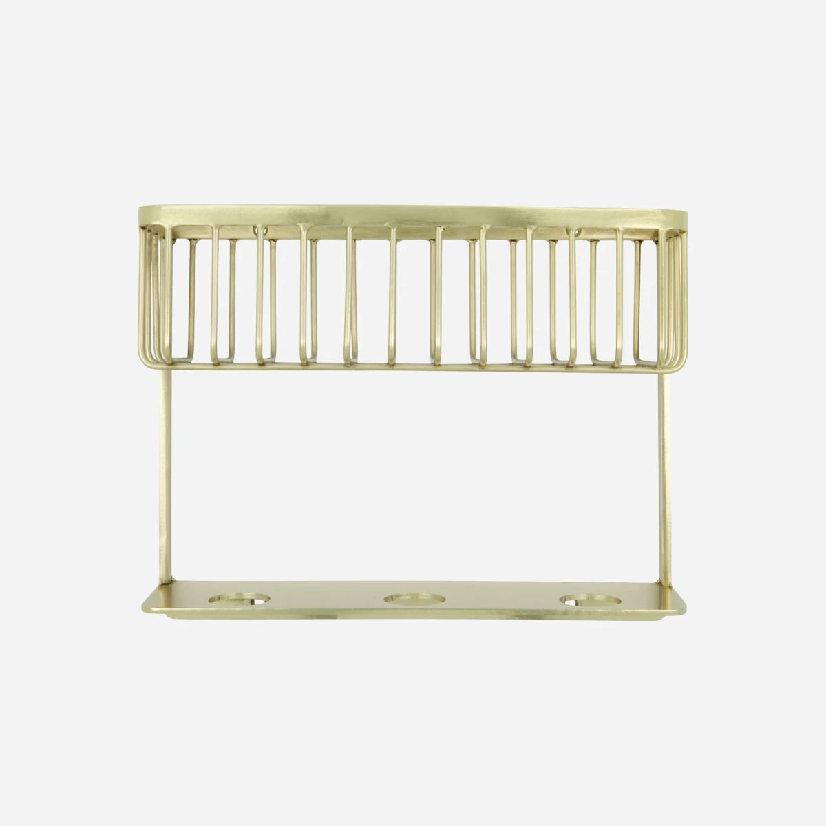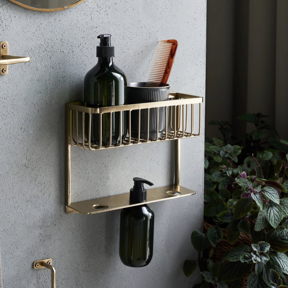 Hold dit badeværelse ryddeligt og dine produkter inden for rækkevidde med Bath-hylden fra House Doctor. Den er fremstillet af rustfrit stål og har fået en guldfarvet overflade for at skabe et elegant og tidløst look. Designet udnytter pladsen bedst muligt med en kurv og en bøjle med plads til tre flasker. En ideel måde, hvorpå du kan opbevare alt du har brug for i brusekabinen, fra shampoo og balsam til scrubs og tilbehør. En anden mulighed er at hænge den på væggen ved din vask, så du har nem adgang til dine hudplejeprodukter. Uanset hvor du placerer den, vil denne hylde øjeblikkeligt opgradere dit badeværelse og holde det ryddeligt.