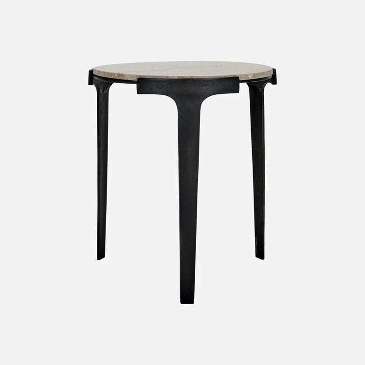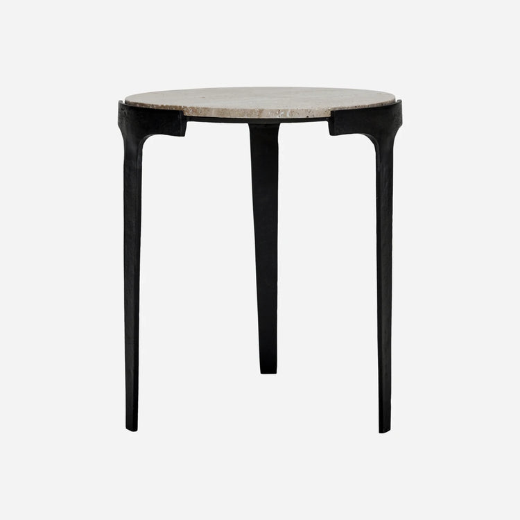 Forvandl dit hjem med dette udsøgte sidebord, der kombinerer naturlig skønhed og moderne design. Bordet er håndlavet og har en bordplade i grå travertin, som støttes af slanke, sorte aluminiumsben, hvilket giver et elegant fokuspunkt i ethvert rum. Hvert bord er unikt med naturlige variationer i travertinen, hvilket sikrer, at ingen borde er helt ens.- Håndlavet håndværk- Unikke travertinmønstre- Slanke aluminiumsben- Alsidig grå farveTilføj dette distinkte sidebord til dit hjem for et stilfuldt og funktionelt element.