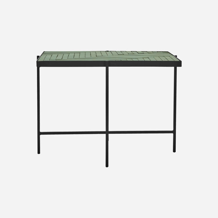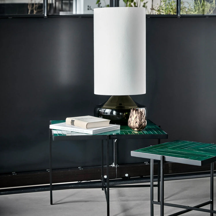 Med dette smukke sidebord tilføjer du elegance og funktionalitet til ethvert rum. Bordet har en grøn keramisk flisebordplade og en slank sort jernramme. Hvert håndlavet bord er unikt med varierende farvespil, der giver personlighed til hvert enkelt bord.- Håndlavet håndværk- Flotte grønne keramiske fliser- Holdbar sort jernramme- Flat-pack for nem monteringForvandl dit hjem med dette unikke og stilfulde sidebord.